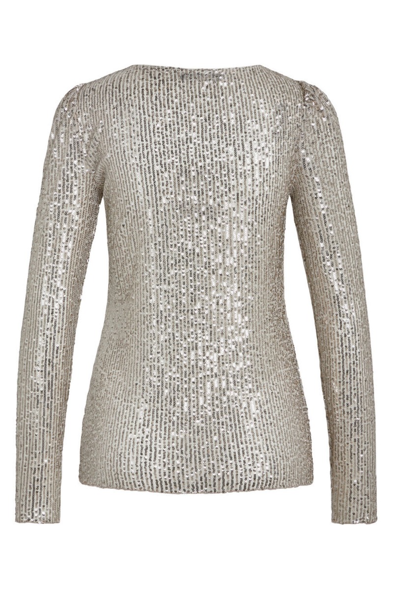 En smuk pailette bluse fra Bruuns Bazaar er kommet til denne sæson. Den er i en let guldfarve og er en smule gennemsigtig. Derfor anbefaler vi også at du bruger en top under. Den har en lille kant ved halsen, så den ikke kradser her, derudover er den også blød på indersiden. Den er fin til et par bukser eller en nederdel.