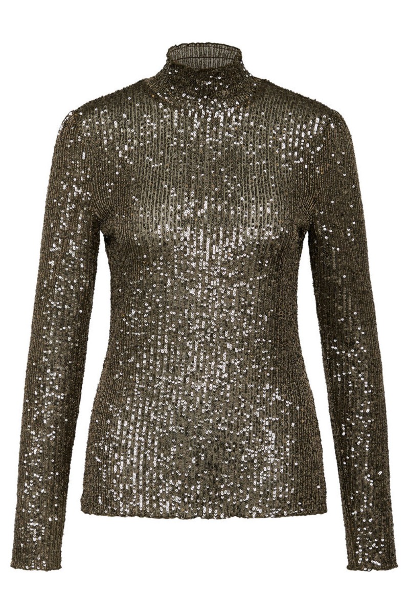 Waaauw! Se nu lige denne smukke bluse fra Bruuns Bazaar! Den er grå med smukke pallietter over hele blusen. Den har en fin smock detalje i halsen i elastik, som gør den nem at tage på og samtidig giver et smukt ekslusivt festlook. Style blusen til vores populære Cindysus bukser eller en fin nederdel.