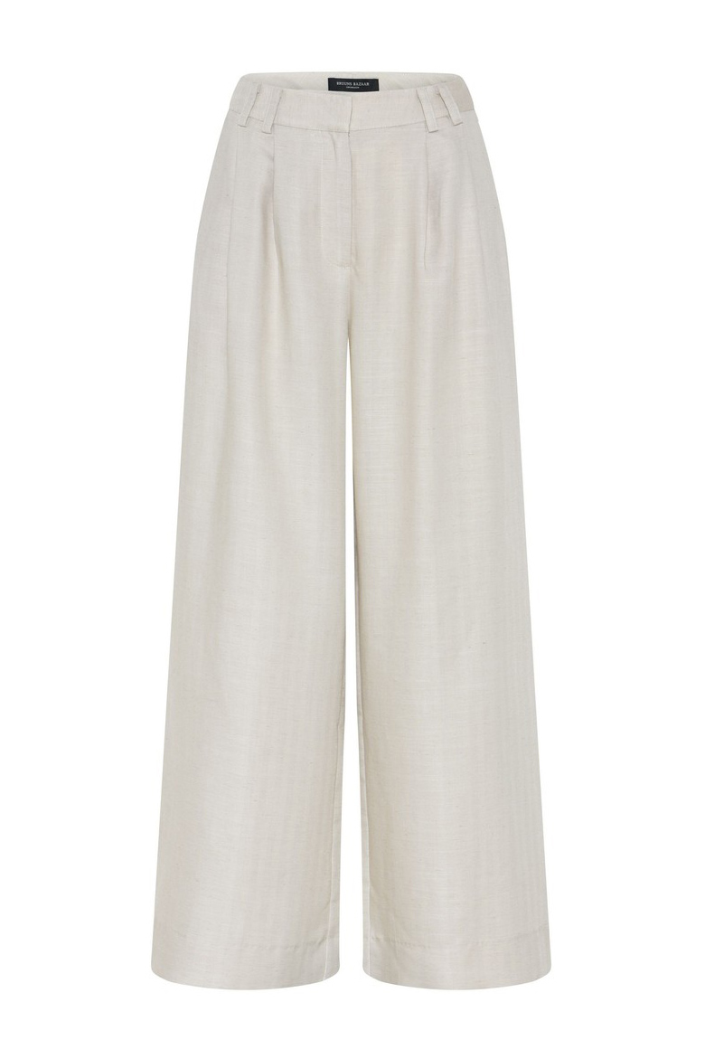 Fede bukser fra Bruuns Bazaar i en smuk beige farve. Kan bruges til både hverdag eller til en festlig anledning! Der findes en matchende overdel som nemt kan bruges sammen så du får et smukt og elegant sæt. Men bukserne kan sagtens også bruges med en simpel hvid t-shirt.