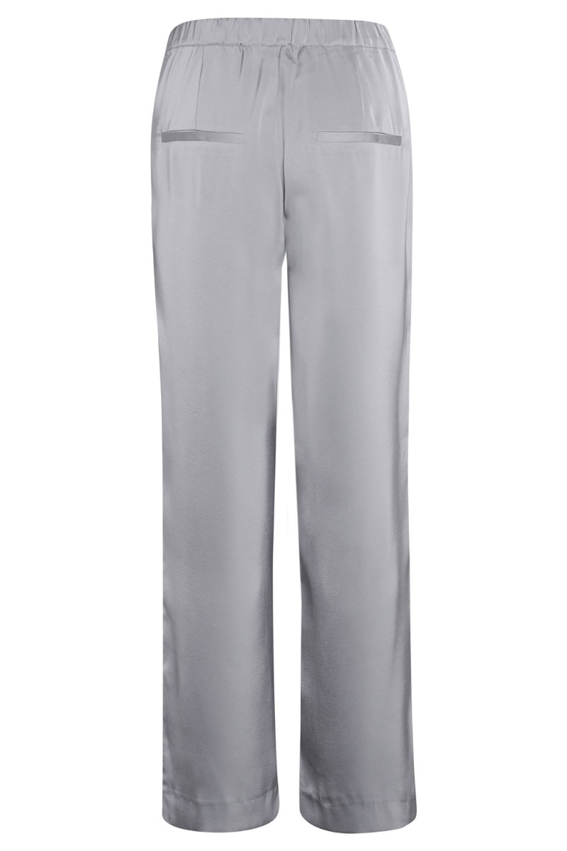 Smukke løse bukser fra Bruuns Bazaar i grå satin look med elastik i taljen. Bukserne er med vidde i benene og lommer. De har et utrolig fint og feminint udtryk stylet med den matchende skjorter.