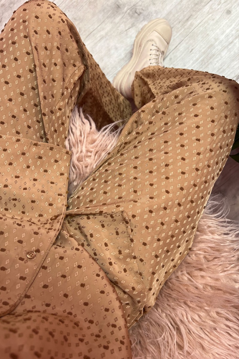 Smukkeste bukser fra Bruuns Bazaar. Bukserne er detaljeret med små bomber der giver en sød effekt. De er lavet i en let kvalitet og sidder løst ved benene med fast linning i taljen der lynes i siden. Style dem med den matchende skjorte.