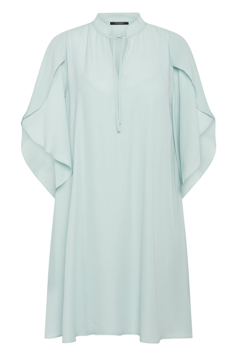 Smuk kjole fra Bruuns Bazaar i den fineste lyseblå farve. Kjolen er med et tynd bindebånd, men kjolen kan både bruges med og uden.