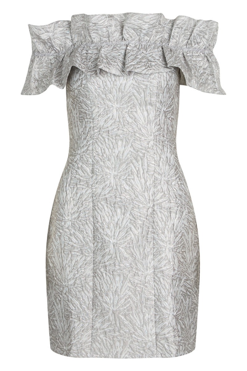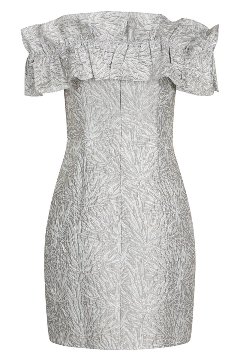 Hold på hat og briler! Den smukkeste kjole er landet fra Bruuns Bazaar og hold nu op hvor er den altså bare lige i skabet. Kjolen er tætsiddende med det fineste metalliske præget mønster og en bred flæsekant langs toppen. Den har stropper der både kan bruges over og under armene efter eget ønske. En kjole vi slet ikke kan vente med at hoppe i til alle de kommende fester.