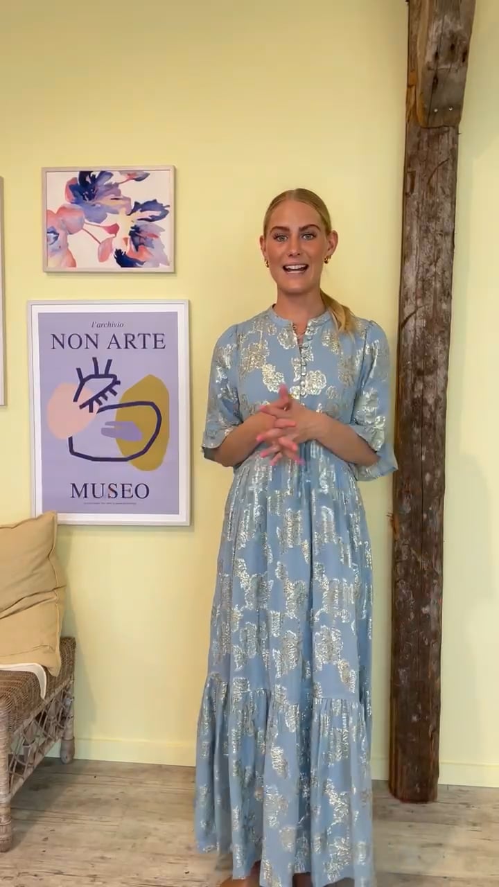 Denne smukke kjole fra Bruuns Bazaar har en masse fine detaljer. Den falder naturligt og har et taknemmeligt snit i en lang model. Kjolen er designet med flæser ved ærmerne og stofbetrukket knapper ned langs brystet foran. Den er foret indvendigt og oplagt med en stilet til de mange kommende fester.