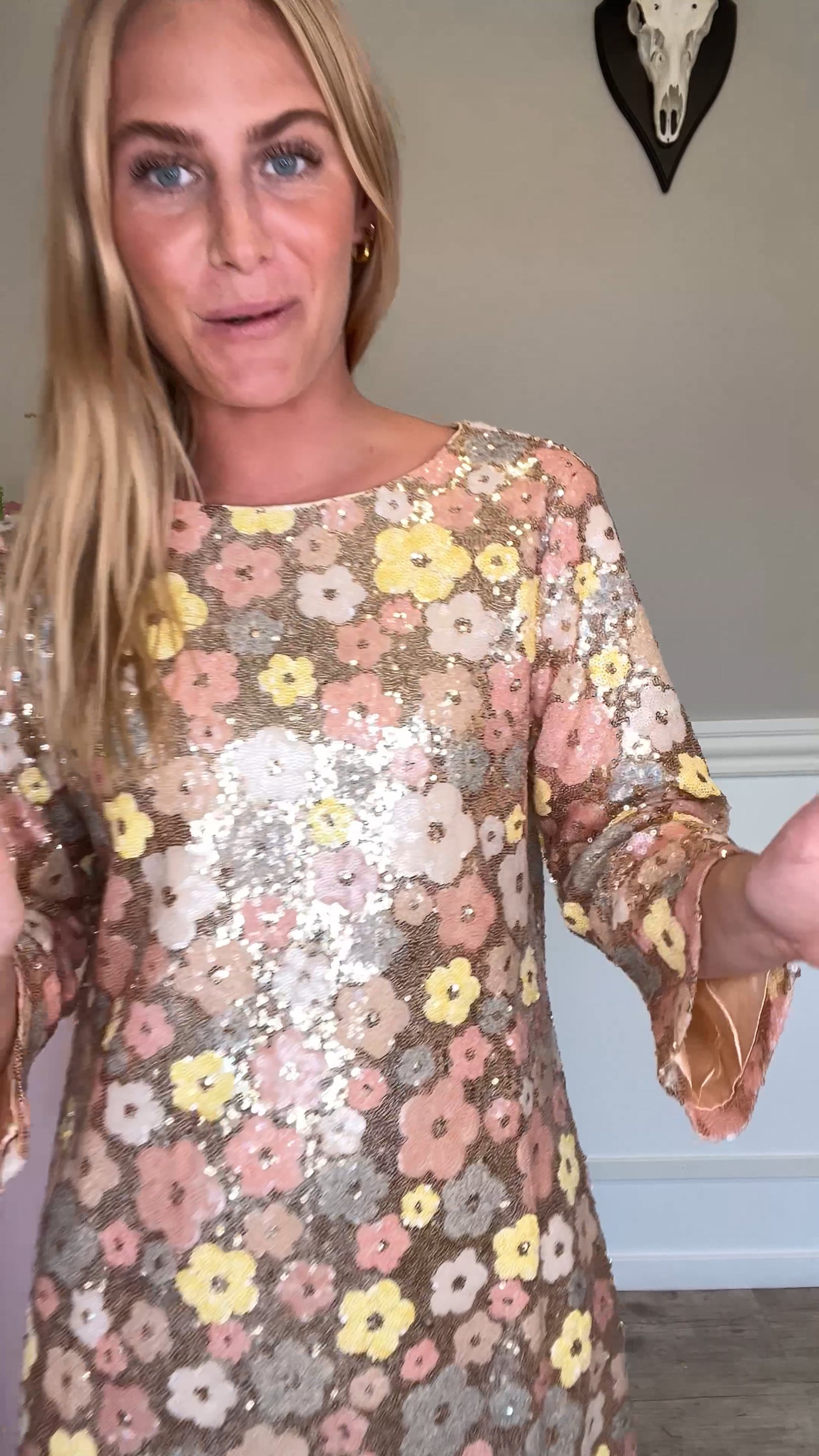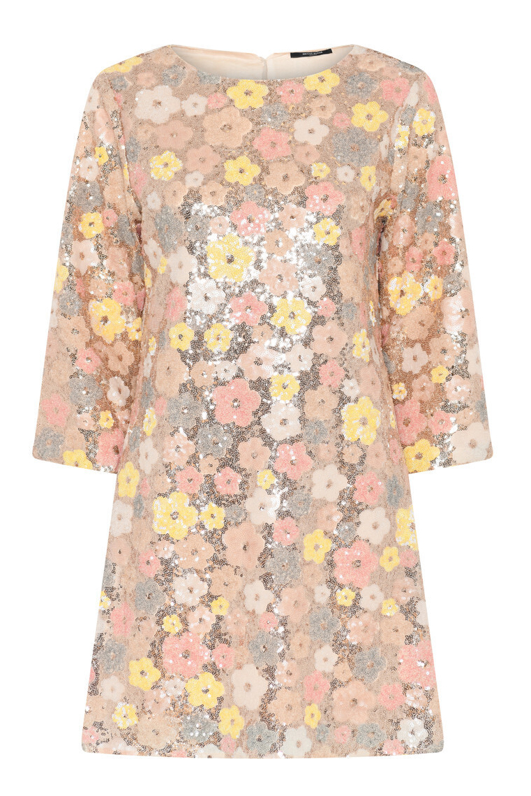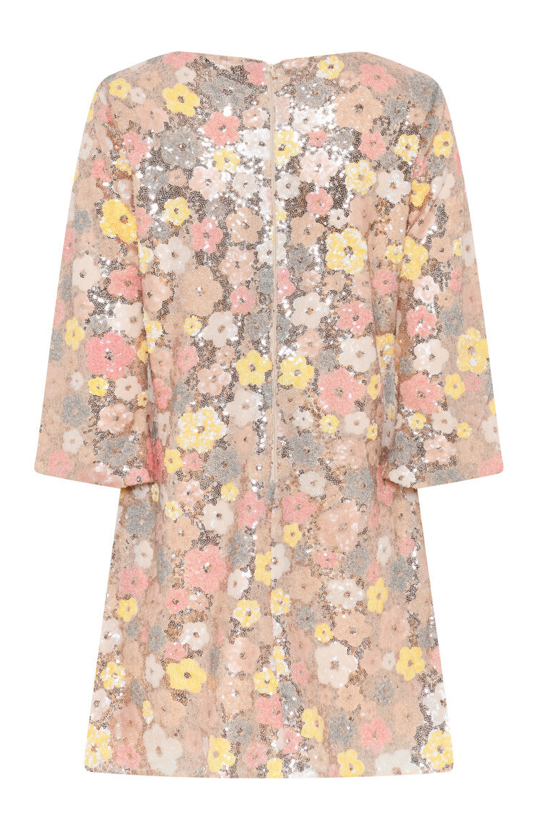 En super fin og sommerlig kjole fra Bruuns Bazaar. Denne kjole er prydet med smukke palietter og blomster i fine friske farver, hvilket gør den super festlig. Den har lynlås i ryggen og 3/4 ærmer.