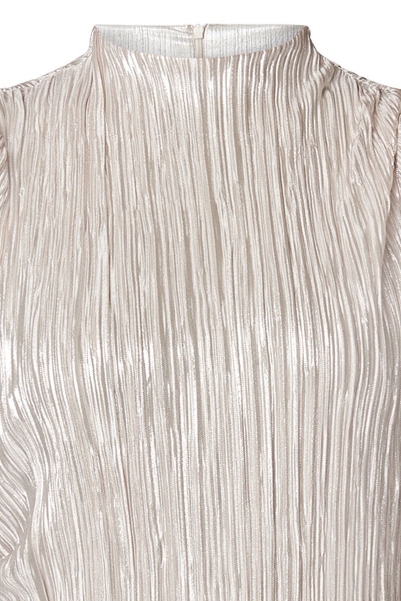 En VIRKELIG smuk kjole til de mange julefrokoster og nytårsfesten fra Bruuns Bazaar. Kjolen er i det velkendte plissé materiale der altid falder utrolig flot langs kroppen i et let løs snit. Kjolen er med stretch og en flot udskæring der lukkes bagtil med lynlås. Denne kjole fortjener helt sikkert en fin enkel stilet og kan samtidig styles mere rå med en støvle til.