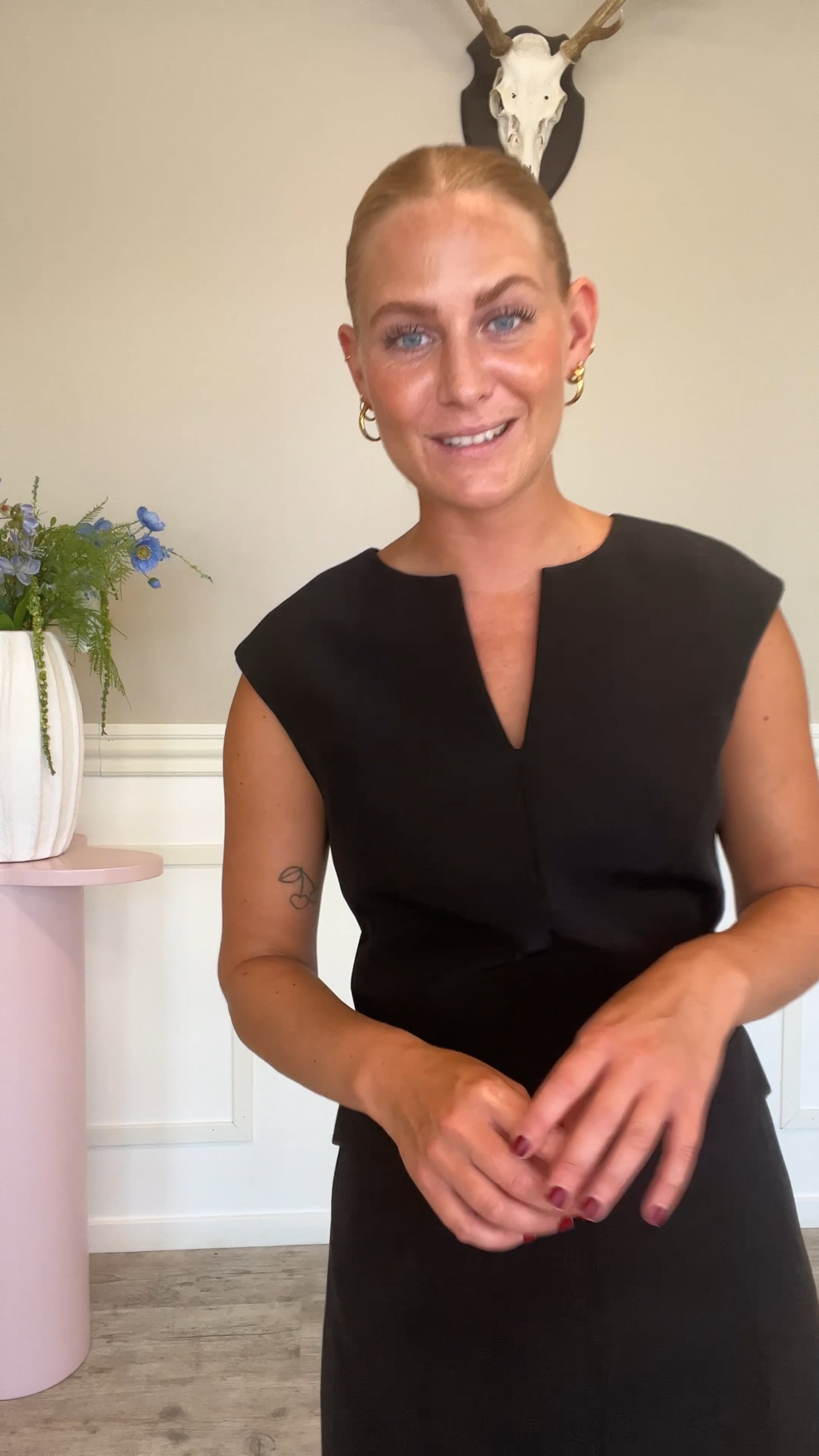 En virkelig smuk kjole fra Bruuns Bazaar er landet i den smukkeste feminine facon! Denne kjole er ærmeløs, men skulderstykket samt den figursyede talje gør, at kjole fremhæver taljen og figuren på den bedste måde! Brug den med en blazer over til hverdag eller til festen med en stilet!