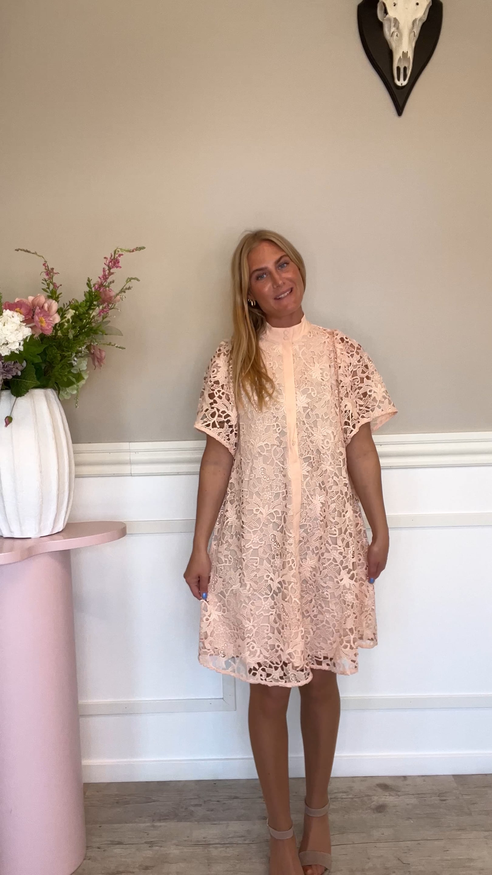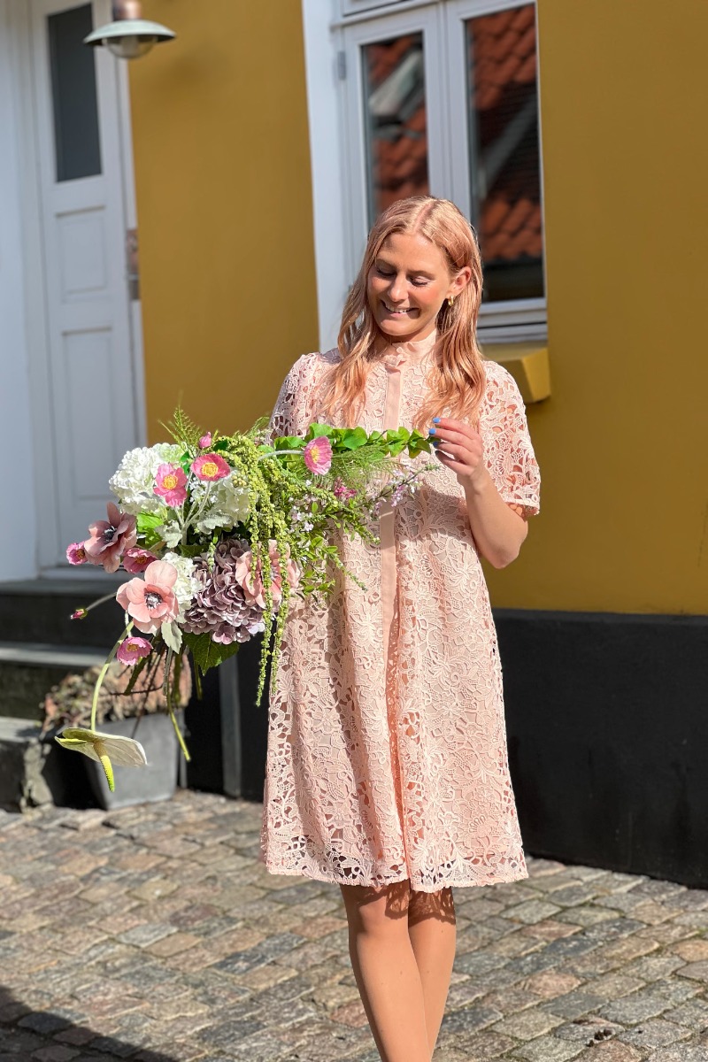 En super sød kjole fra Bruuns Bazaar. Denne kjole har en god længde, korte ærmer og den flotteste sommerlige farve. Super fin til sæsonnens brullypper eller til andre pænere lejligheder.