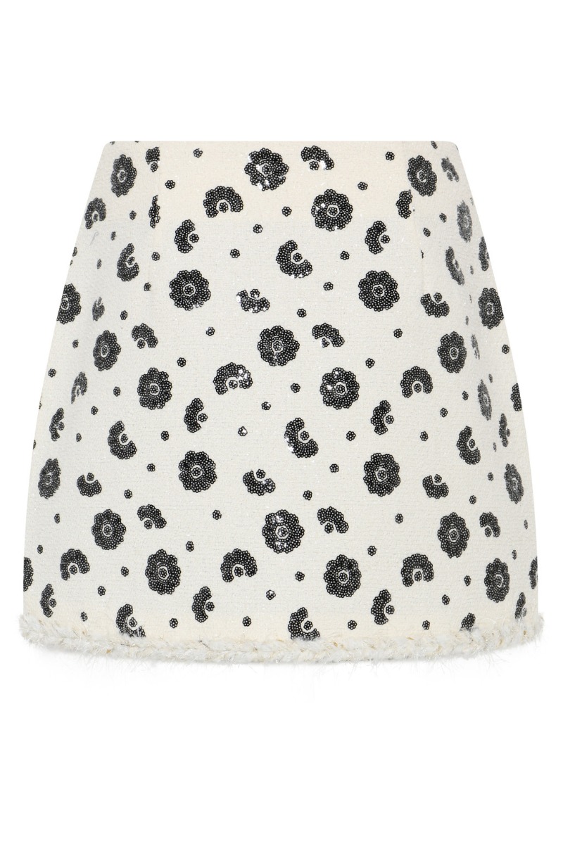 Denne smukke nederdel fra Bruuns Bazaar er landet på shoppen og er perfekt til efterår og vinter med et par strømpebukser inden under. Den er i en flot hvid/sart beige farve med flotte sorte blomster som er paliet-lignende. Derudover har den en rå kant som gør udtrykket endnu mere unikt.