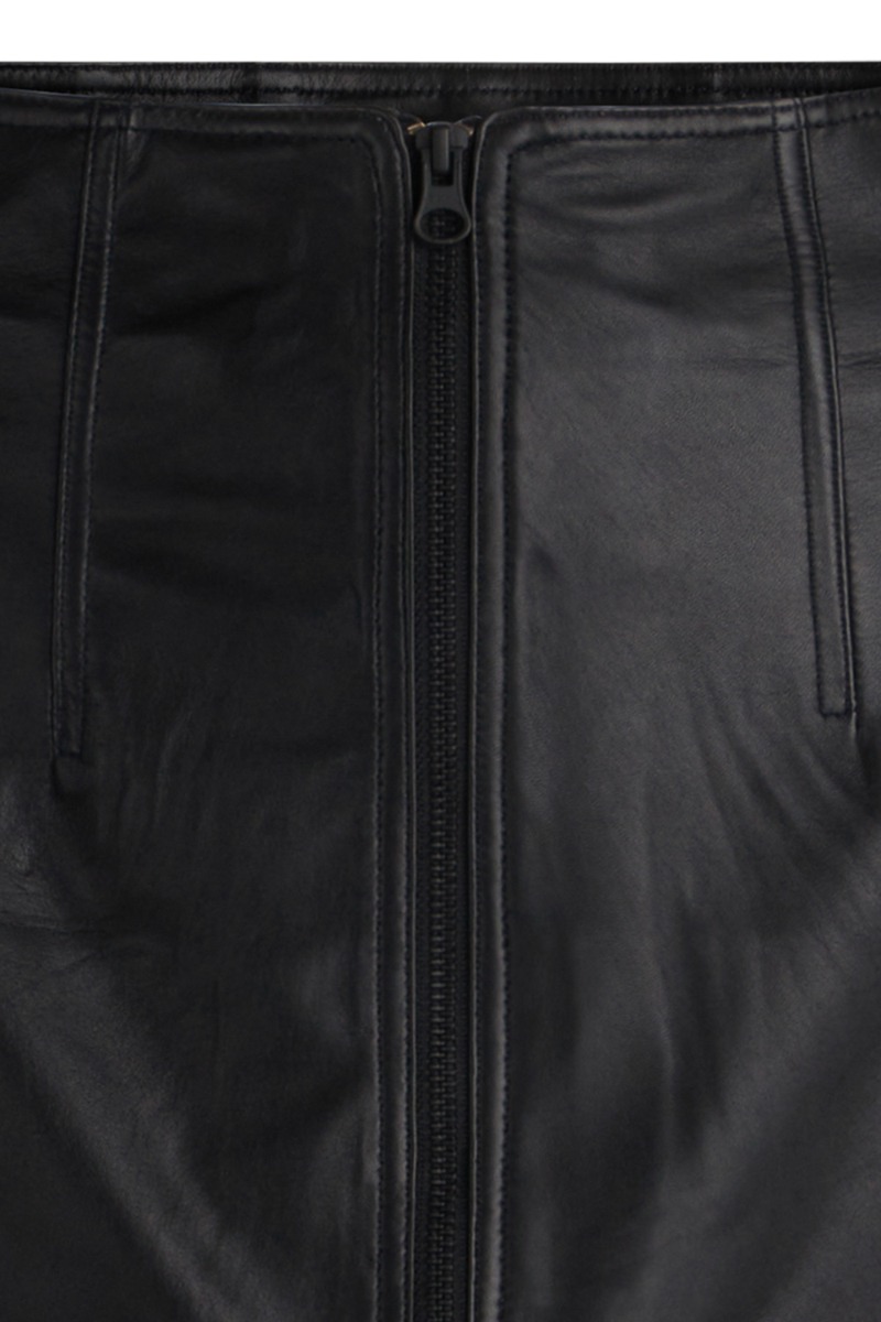 Sort læder nederdel fra Bruuns Bazaar i den skønneste model. Nederdelen er tæt i en lang pasform der gør den utrolig feminin og anvendelig til alle anledninger. Den er designet med en grov lynlåsdetalje foran der skaber en lille slids i bunden. Har du ikke en læder nederdel hængende hjemme så er det altså på tide. Den er uundværlig og kan bruges år efter år!