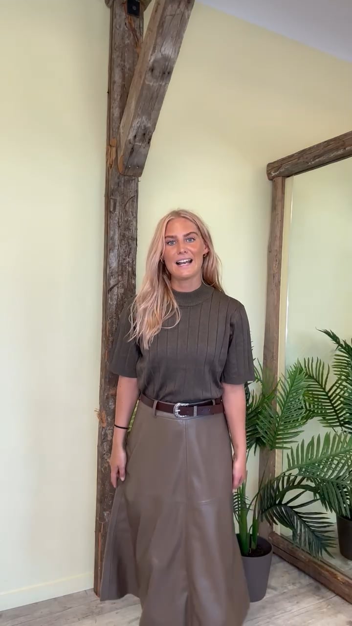 En sej feminin nederdel fra Bruuns Bazaar I vaggans læder der gør den super lækker at have på. Nederdelen har nogle seje diskrete detaljer og fast linning i livet. Den kan både styles til hverdag og fest og er en tidsløs model i A snit som man bare skal eje!