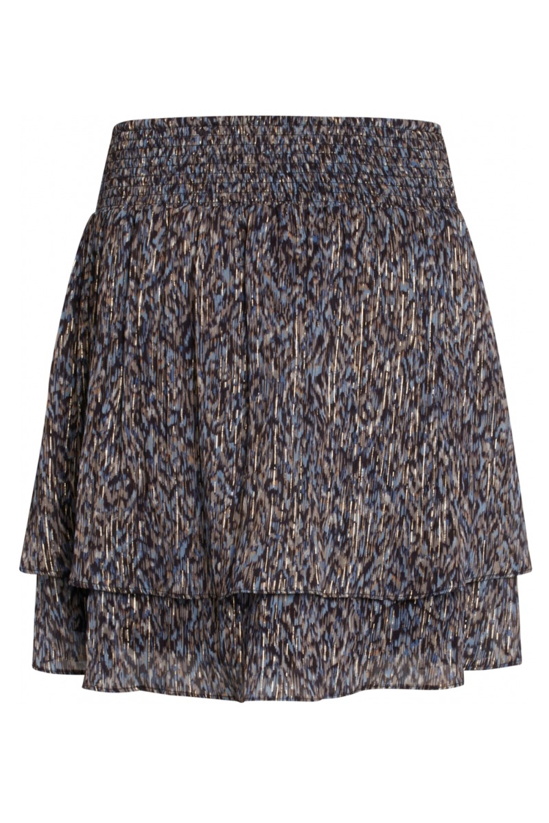 Skøn nederdel fra altid flotte Bruuns Bazar. Nederdelen er med grafisk print i mørke nuancer med gulddetaljer. Der er et bredt smok stykke i taljen der sikre en god pasform og lag-på-lag effekt i skørtet. Perfekt at style med skjorten i samme print for en gennemført look eller til en enkel T-shirt.
