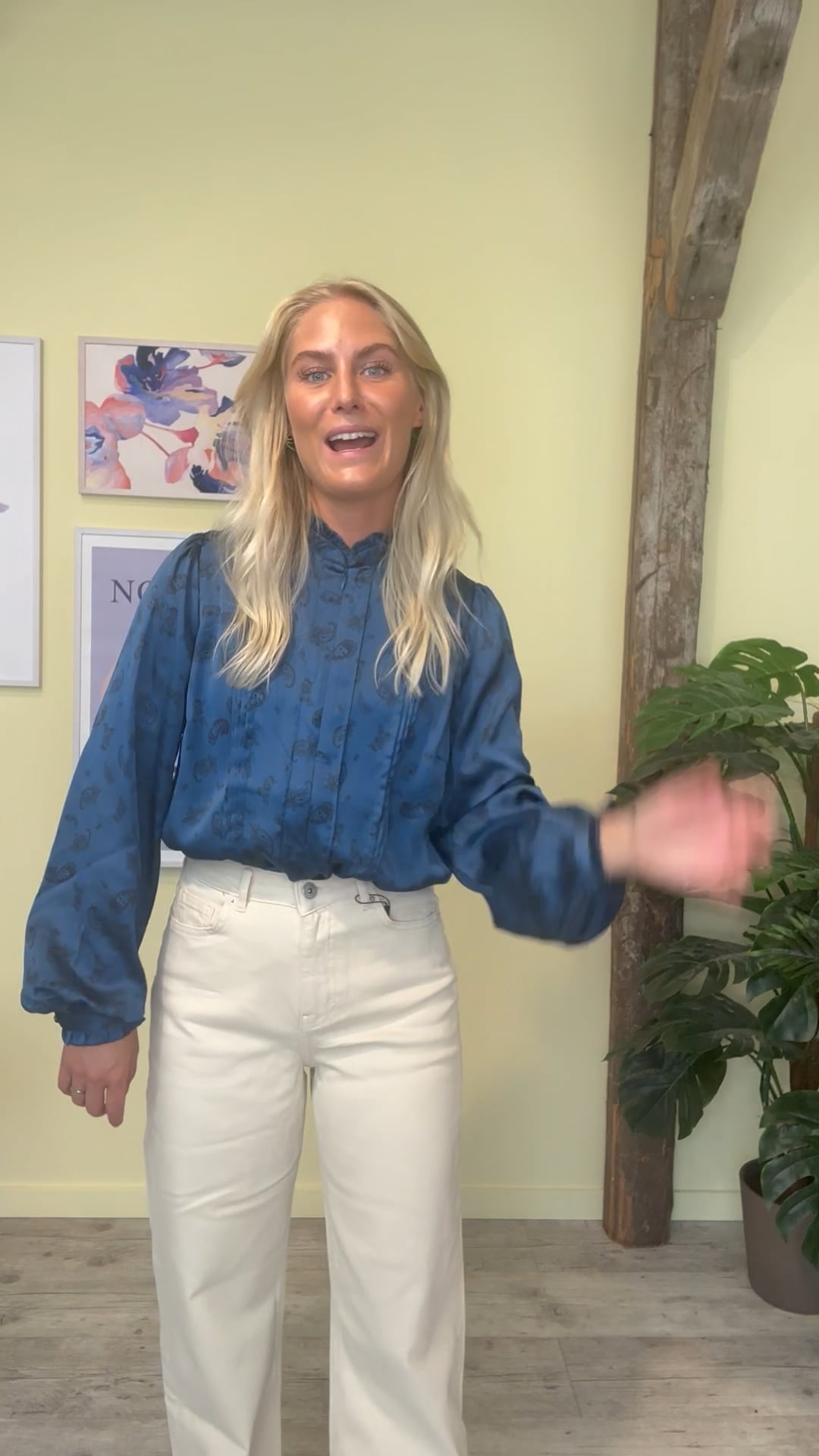 Utrolig smuk og elegant bluse fra Bruuns Bazaar. Skjorten er designet i et klassisk snit med diskret skjult lynlås foran og de smukkeste flæsedetaljer ved kraven og håndleddet. Blusen har en "silke-glat" overflade i navy med et unikt diskret sort print. Style denne bluse til en pæn cindysus buks eller nederdel.
