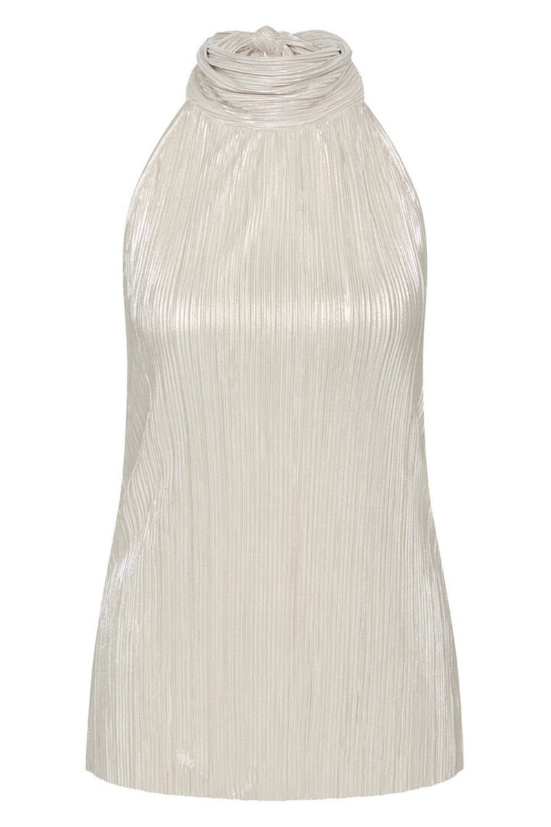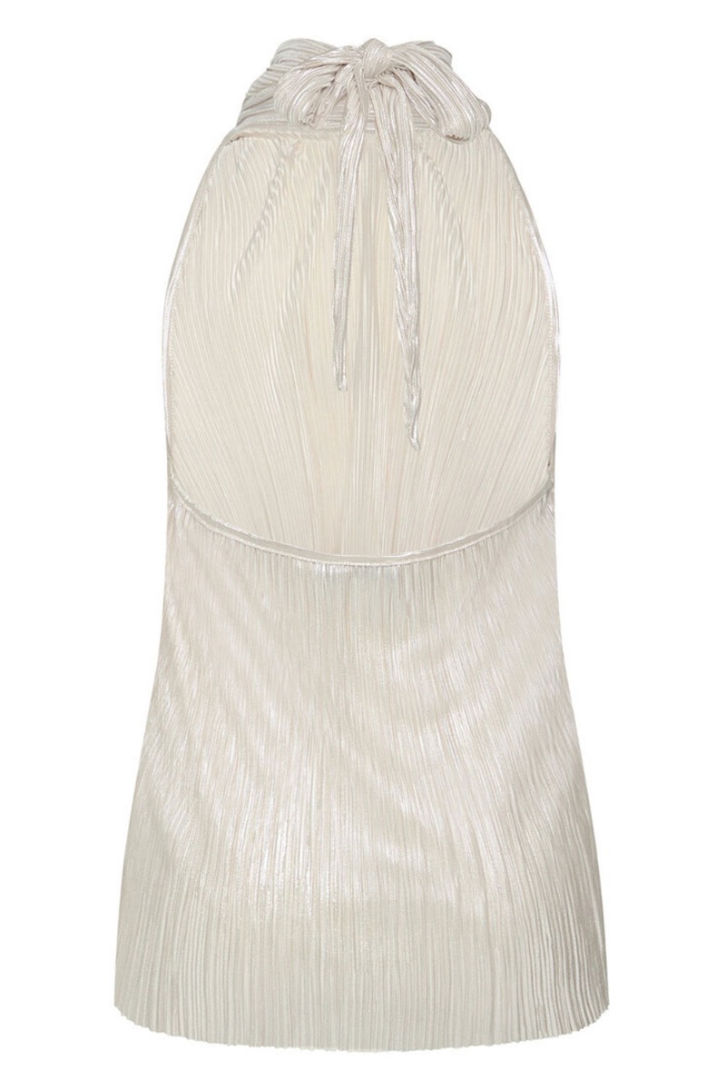 Den smukkeste top fra Bruuns Bazaar i sølv farvet med shineeffekt og glimmershine! Den lukkes i nakken og skaber en flot detalje ved ryggen. Toppen i er en lækker behagelig plissé kvalitet der falder flot og er super smuk at style med et par pæne bukser eller en nederdel.