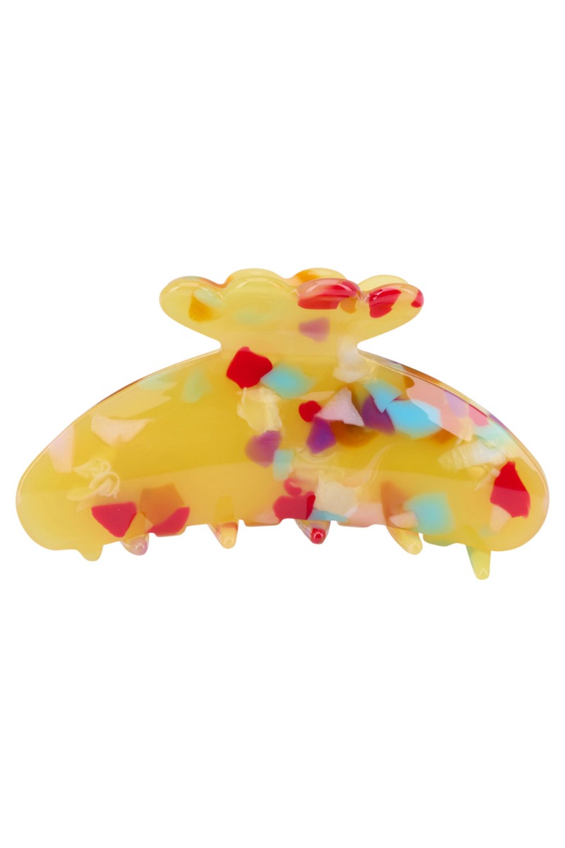 Smuk hårklemme fra By Stær i gul med konfetti print. Klemmen sidder godt og holder på håret uden at hive i det eller skabe ubehag. Det er perfekt til din styling både til fest og hverdag.