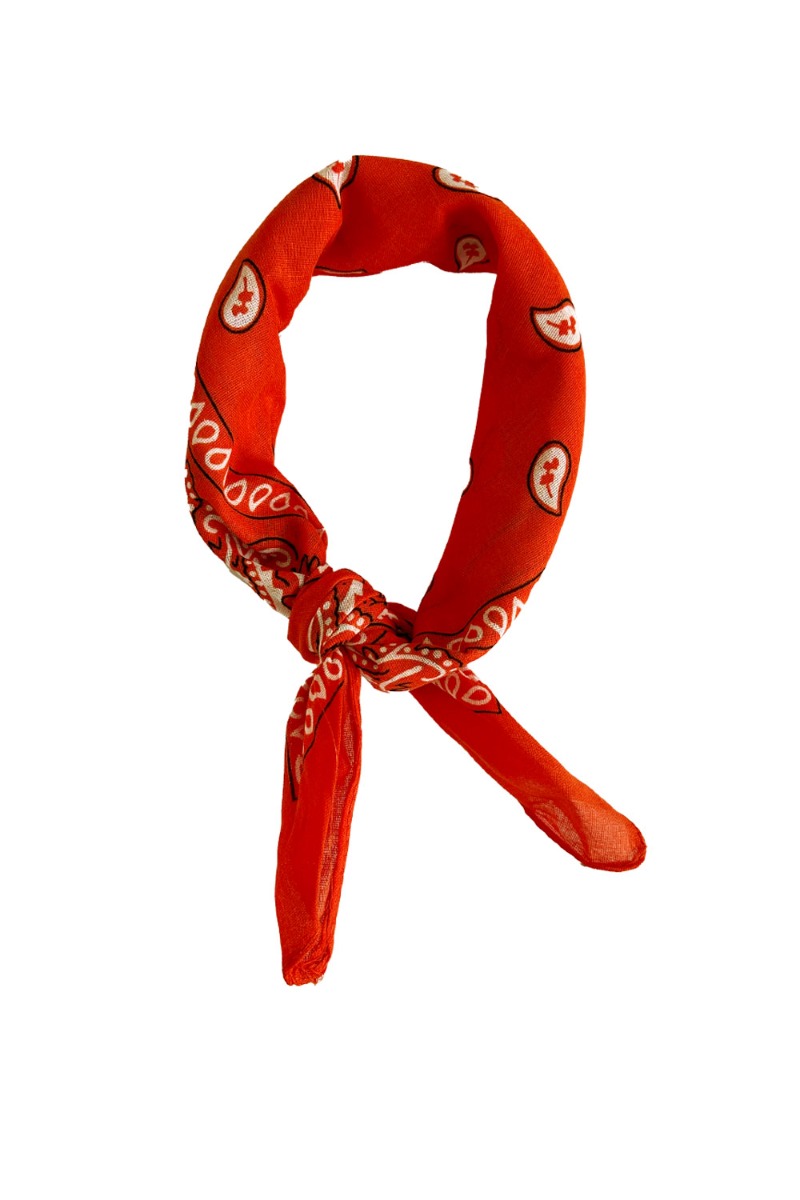Cool bandana fra By Stær som både kan styles i håret og om halsen som et cool lille tørklæde til hverdagslooket. Tørklædet er rød/orange med det klassiske mønster og findes i flere farver
