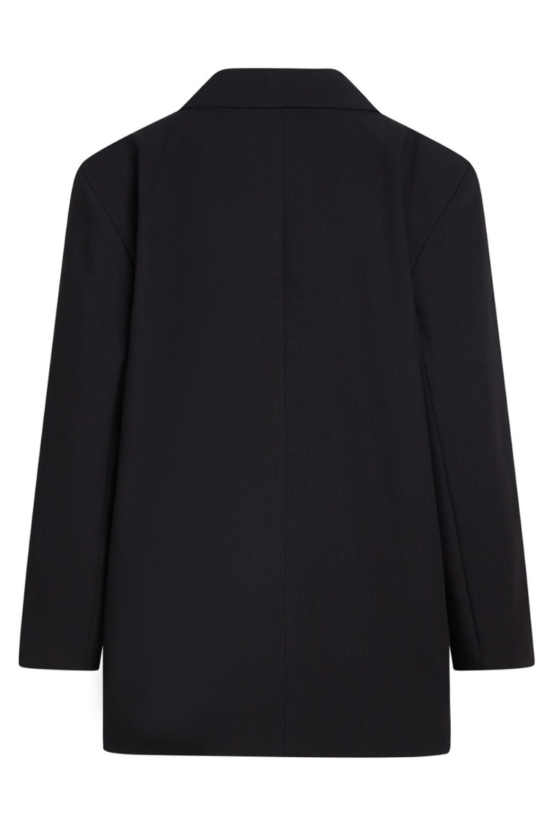 Oversize blazer fra BZR i klassisk sort. Blazeren er tidsløs og altid genial at have i garderoben alle årstider. Den har en enkelt stofbetrukket knaplukning foran der skaber en v-udskæring når den er lukket. Brug den med de matchende bukser