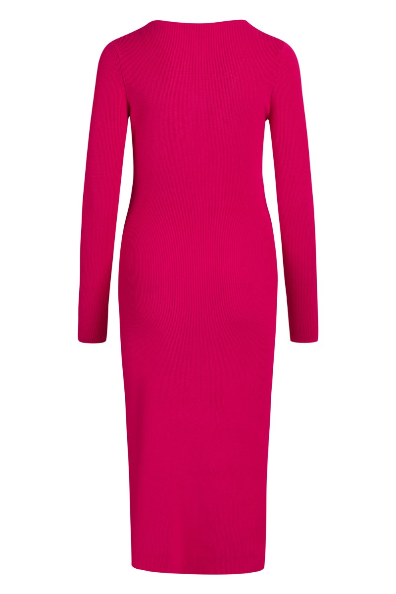 En smuk strikkjole fra BZR i en flot pink farve. Kjolen er tætsiddende i en dejlig blød ribkvalitet der er super strækbar og egner sig perfekt til en voksende babybule. Den har et flot cut-out detalje foran og er vendbar - mega smart!