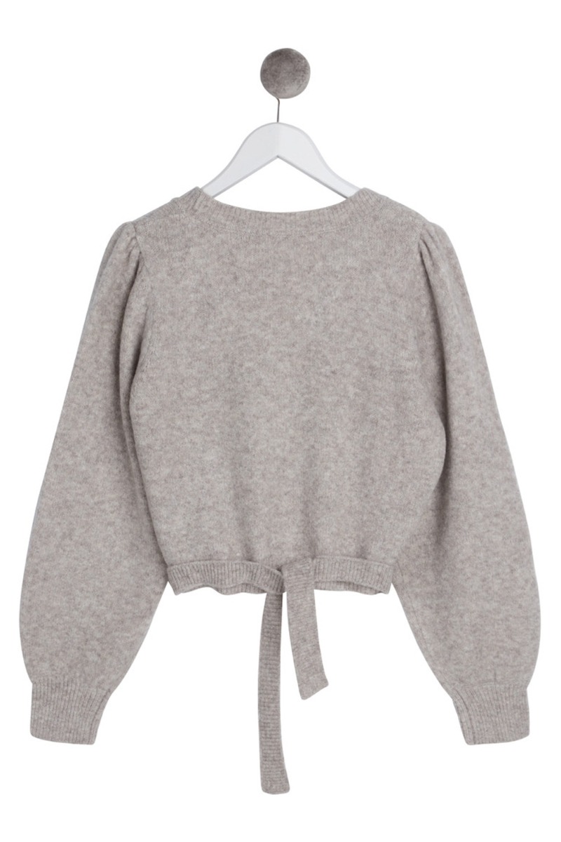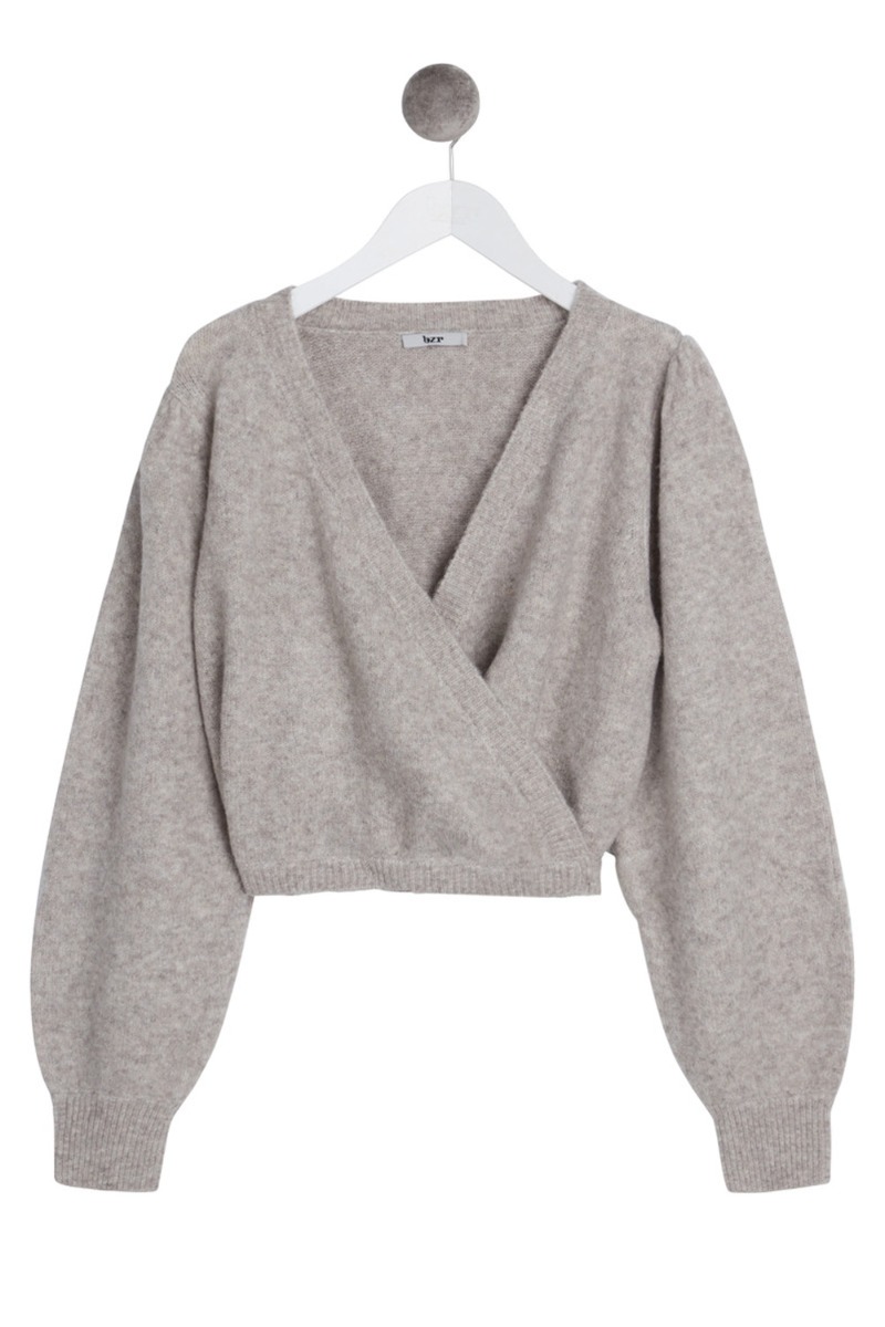 En virkelig smuk og dejlig strik fra BZR i den fineste nuance. Strikken har en kort pasform med en smule ballon-snit der lukkes med slå om og kan bindes både bagtil og i siden alt efter eget ønske. Foran går strikken på kryds og skaber en feminin v-udskæring. En super smuk strik at style til et par bukser eller nederdel alt efter humør.