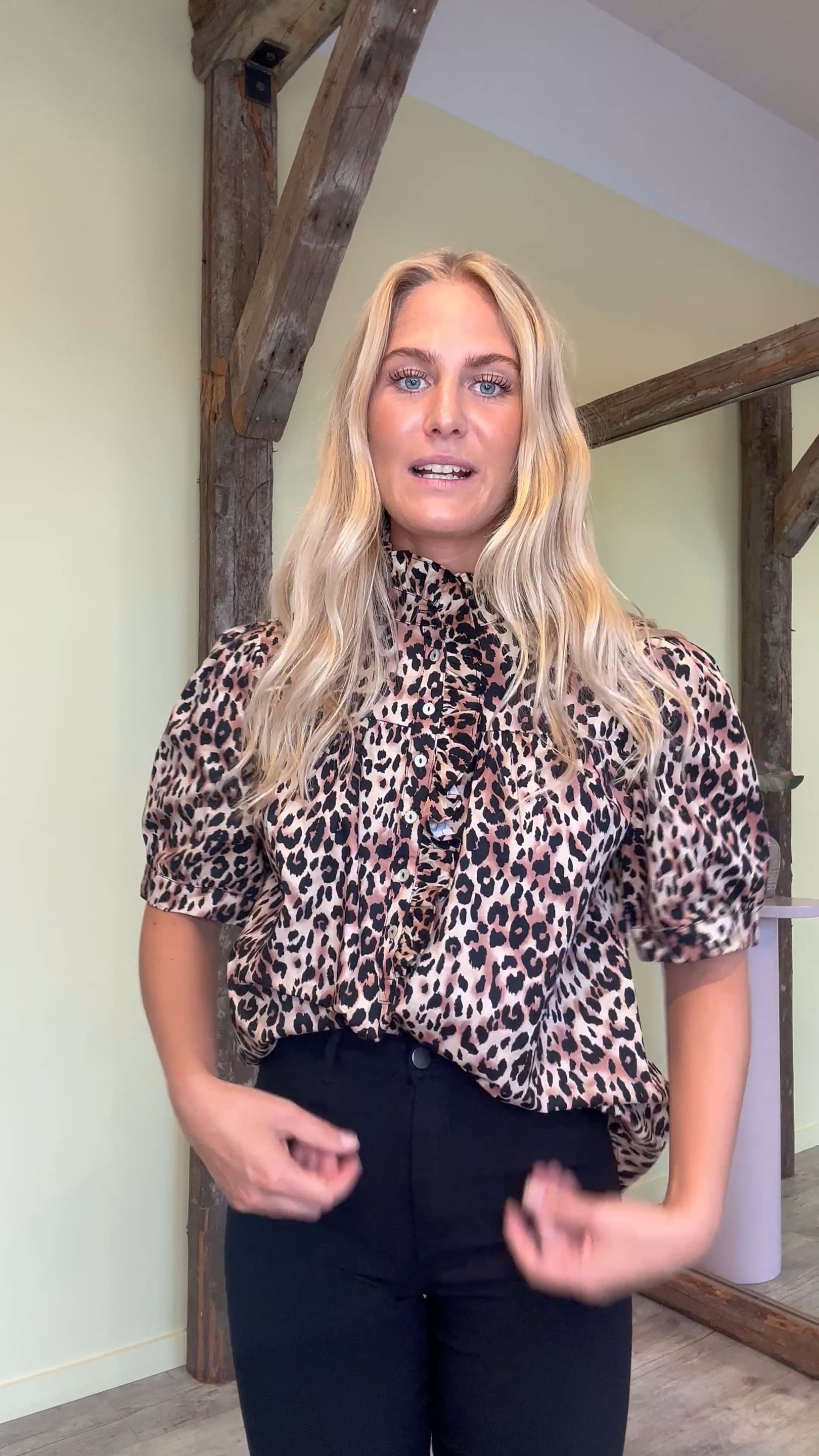 En flot bluse fra Continue i det trendy leo print. Blusen er perfekt til sommer, både som hverdagsbrug eller til en finere begivenhed. Den har en løs pasform, korte ærmer med en svag pufeffekt, samt flæser ved kraven.