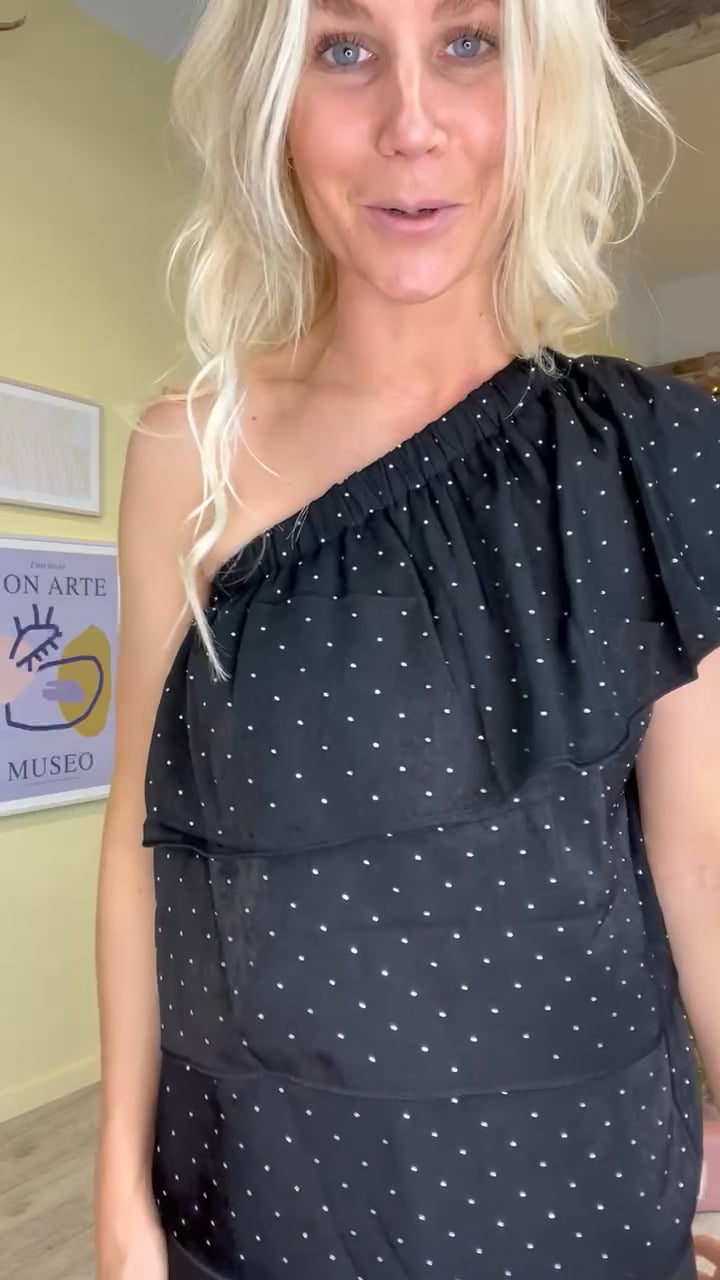 Den smukkeste oneshoulder top fra Continue! Toppen er sort med peblum effekt og har de fineste små glimmersten, hvilket bare gør at toppen egner sig perfekt til de kommende fester. Style toppen til en fin nederdel eller et par pæne habbitbukser.