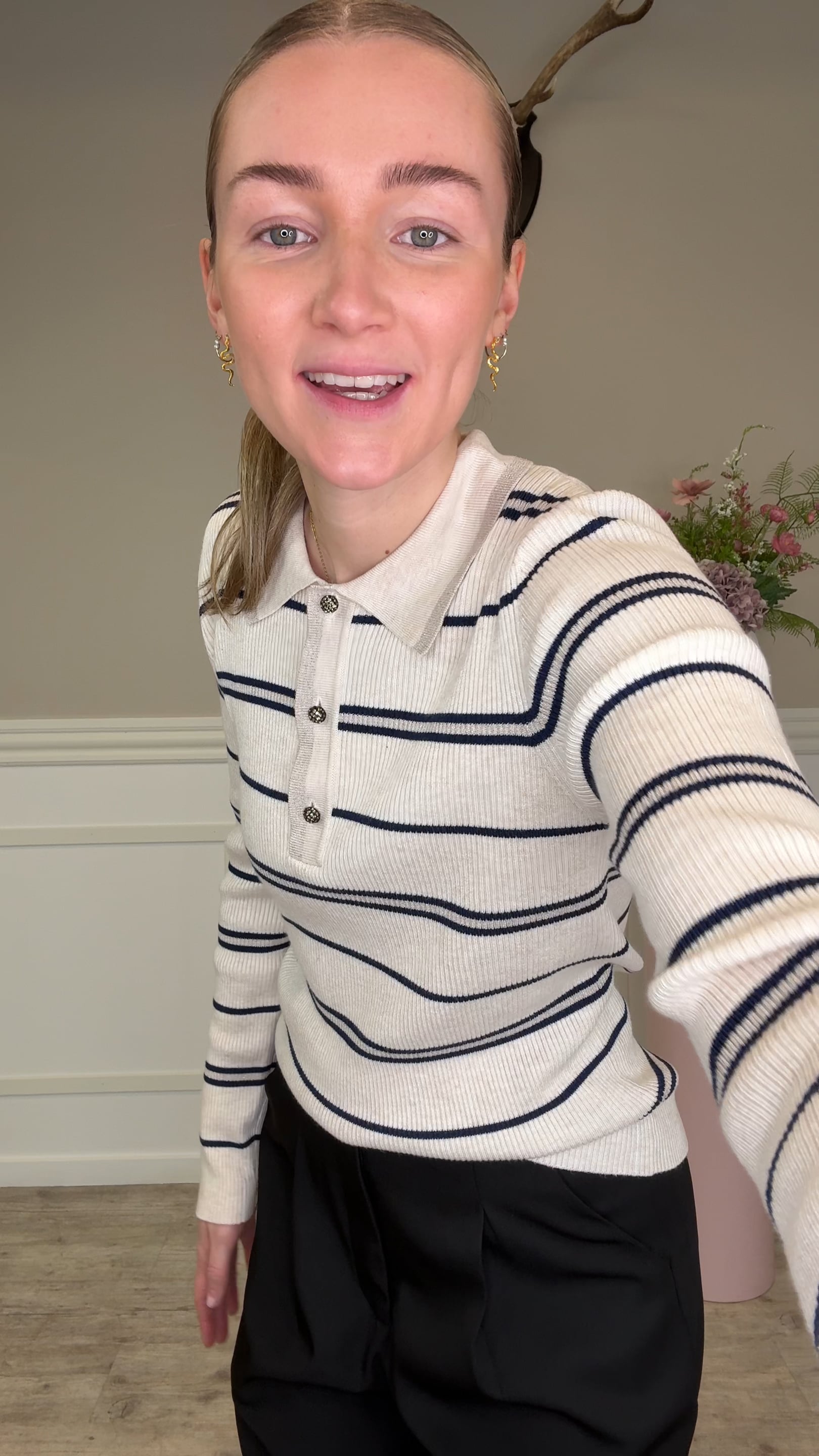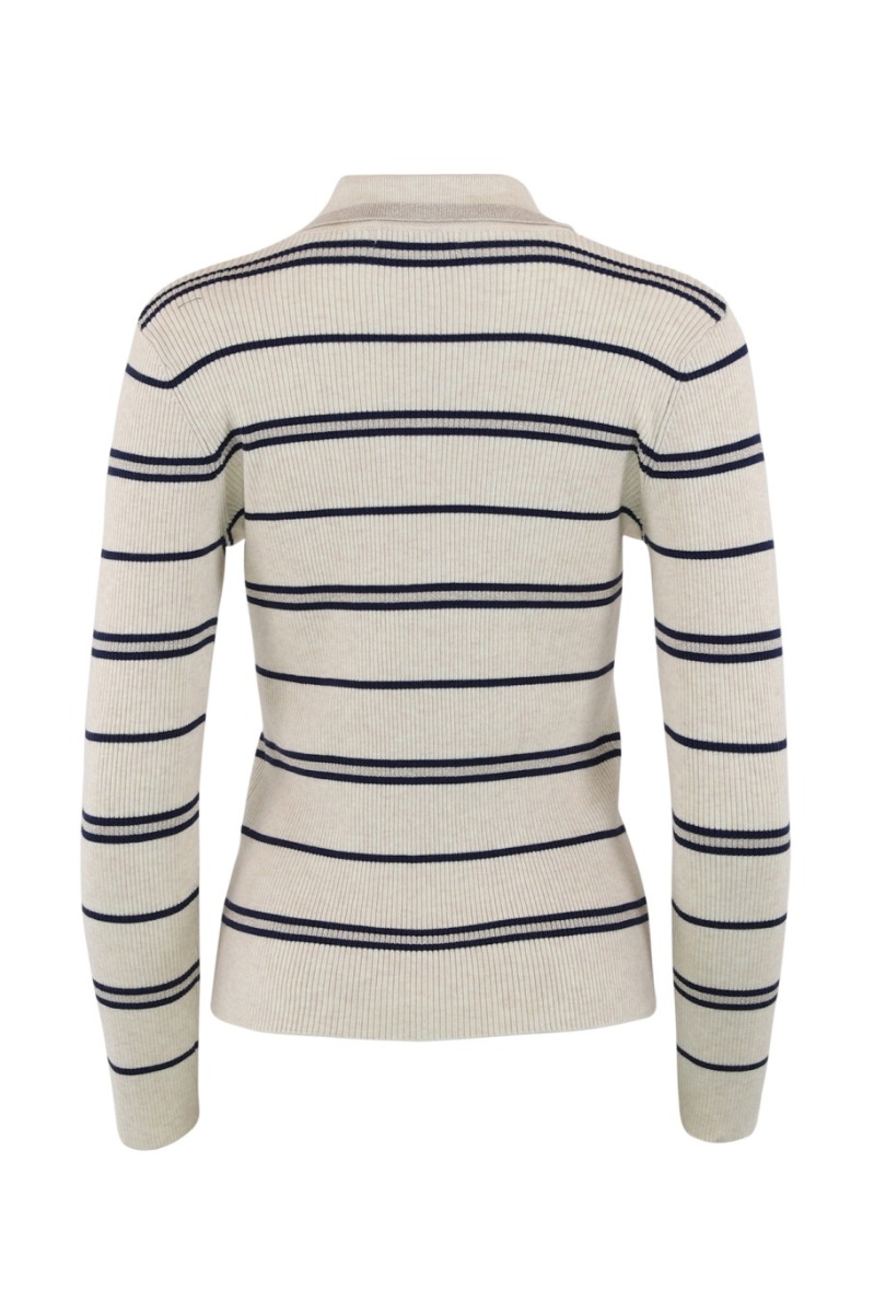 Continue - Bluse - Eva Polo Knit Stripe - Off White/Navy stripe