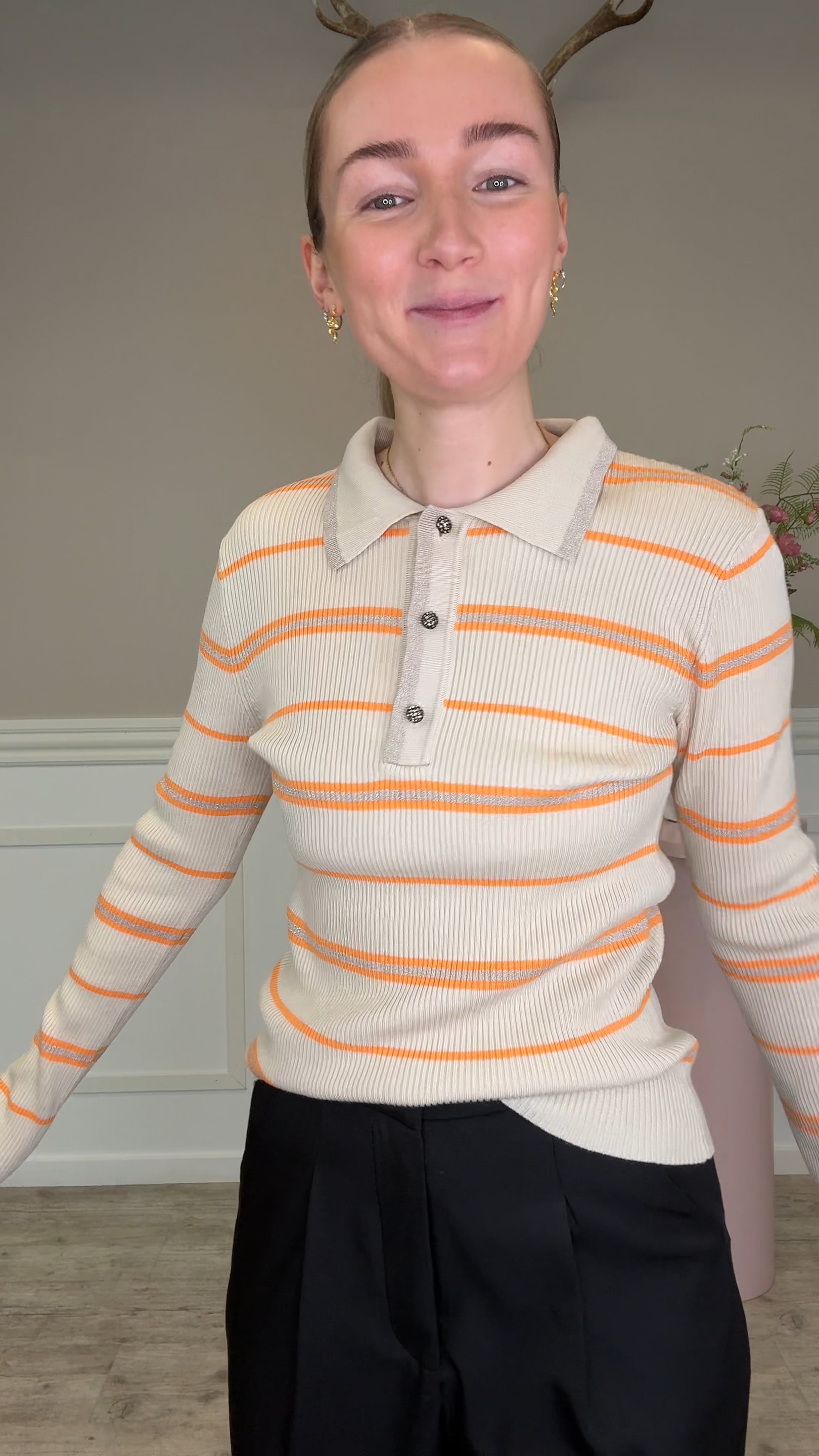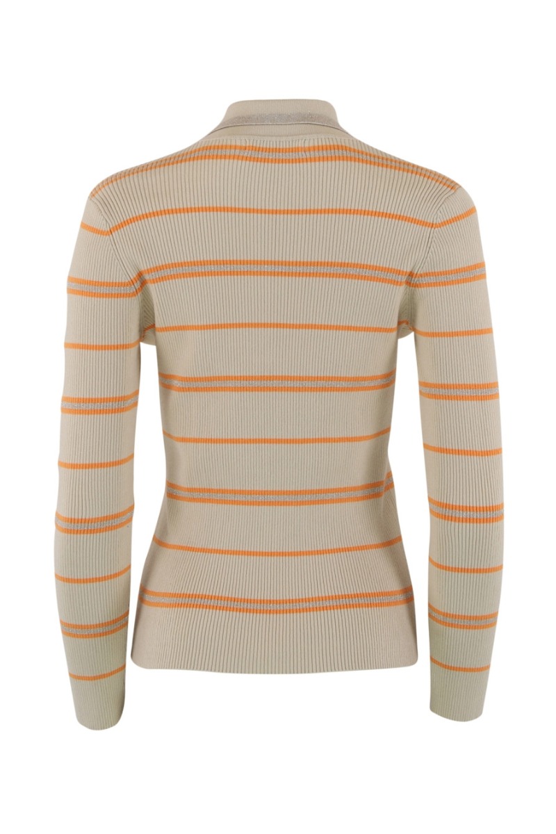 Continue - Bluse - Eva Polo Knit Stripe - Sand/Orange Stripe