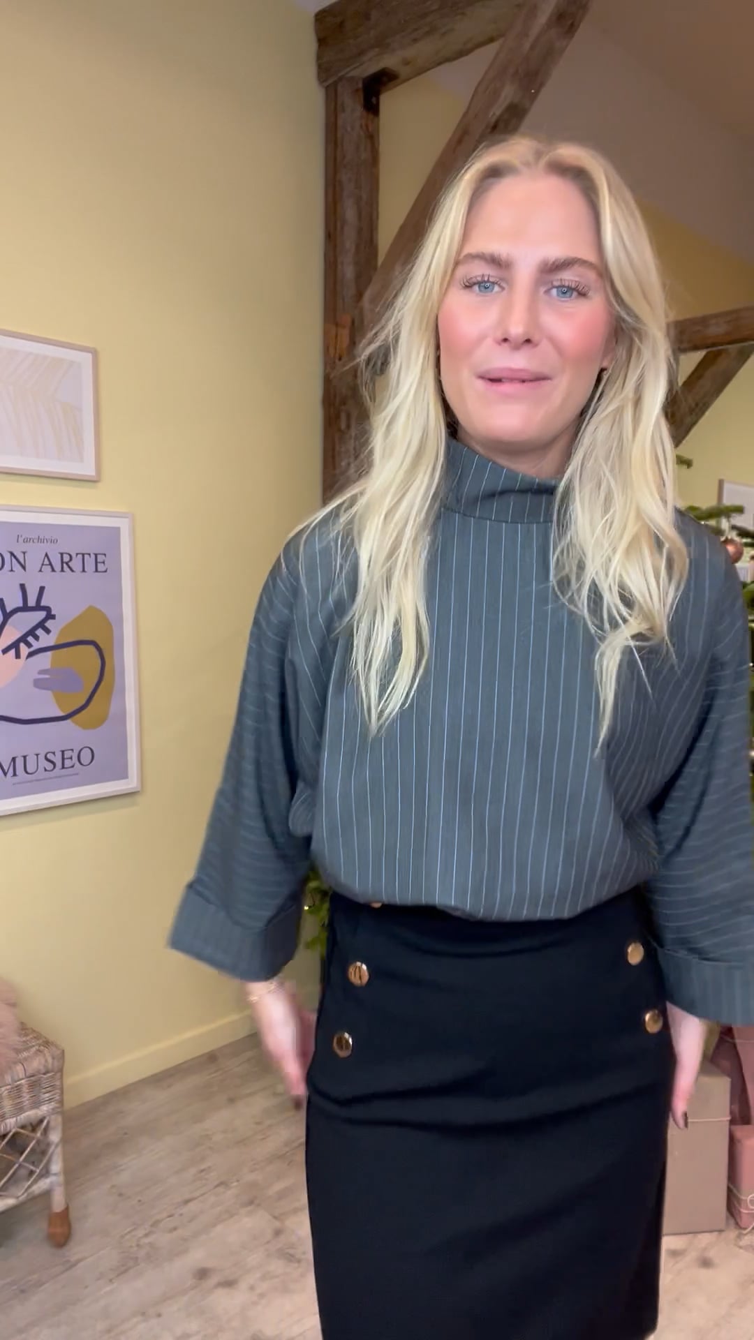 De lækreste stretchy bukser fra Continue, i et elastisk materiale. Bukserne er med guldknapper som en fin ekstra festlig detalje. Style bukserne til hverdag med en strik eller dress dem op med en fin bluse til.