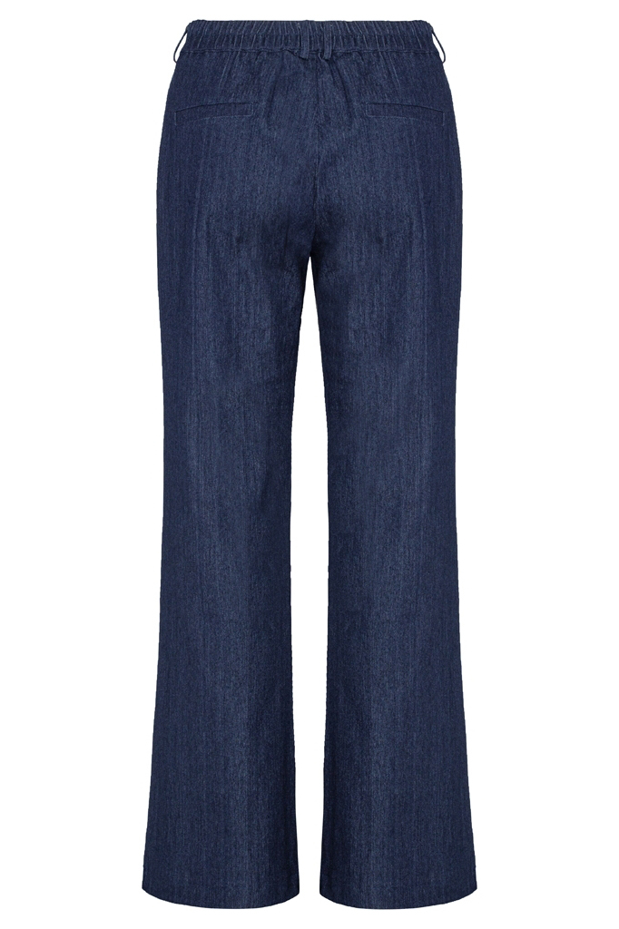 De fineste bukser fra Continue i en blå denim kvalitet. De er med vide i benene og har elastik i taljen. Derudover er der skrålommer i begge sider og de lukkes med lynlås og knap foran. Der er en smule stræk i kvaliteten men stadig så den er fast i kvaliteten.