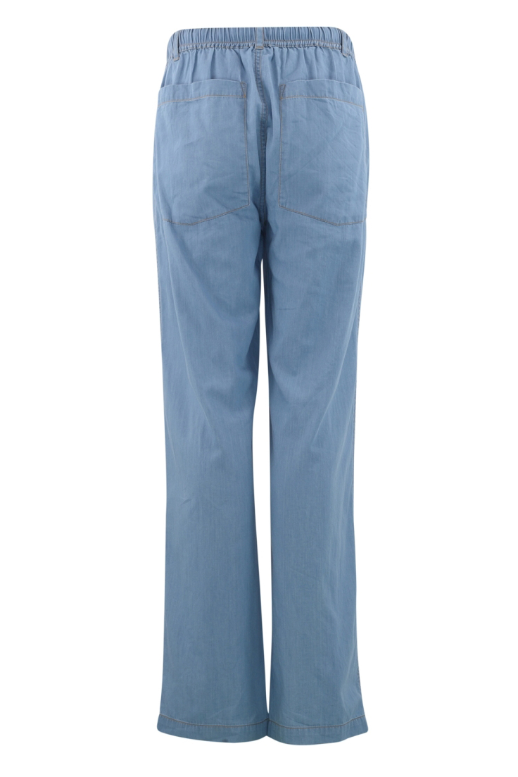 En sød buks fra Continue er kommet i en skøn blå farve der passer fint til denne sæson. Den er med elastik i taljen og har skrålommer i begge sider. Derudover der vide i benene og de er samtidig også lavet i en dejlig lækker blød kvalitet. Der findes en matchende top til.