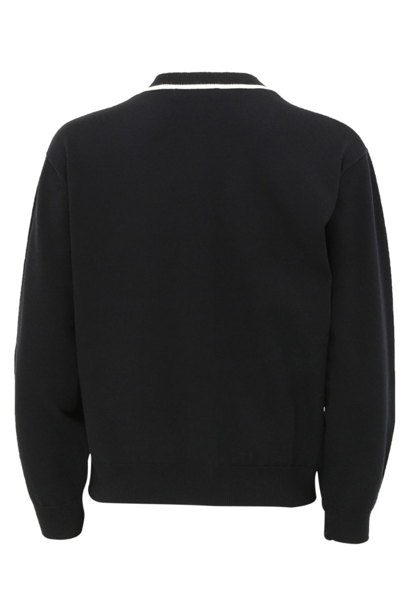 Denne lækre cardigan er lavet i den blødeste kvalitet og er fra Continue. Den er sort med hvide striber som fint markerer hals, ærmer og knaplukning. Knapperne er guldfarvet og har lidt struktur i sig så den giver liv til blusen. Blusen har lommer foran og findes også i hvid med sorte striber.