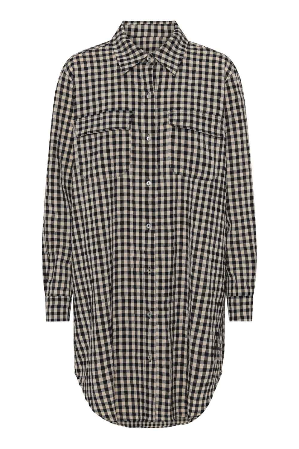Continue - Skjorte - Gila Small Check Long Shirt - Check Black/Sand