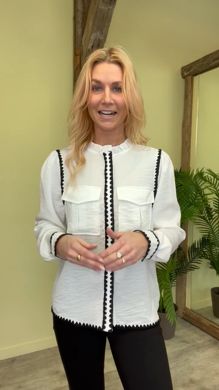 Denne skjorte er dejlig let i kvaliteten og med fine kontrast farvet detaljer. Den er fra Continue som er gode til den løs pasform og også rigtig gode til at lave disse feminine flæse detaljer. Den har skjult knapluknig foran og brystlommer i begge sider. Derudover er den fin sammen med et par jeans eller til en nederdel.