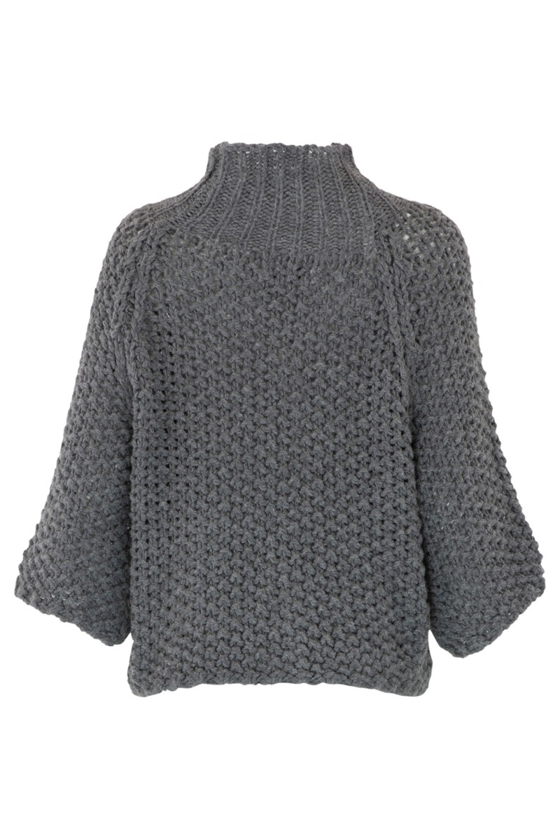 En smuk strik i ternet mønster i en fin grå brun farve er landet fra Continue. Strikken haar høj hals og 2/4 lange ærmer med masser af vide. Den passer så fint sammen med et par rå jeans og til et par sneaks.