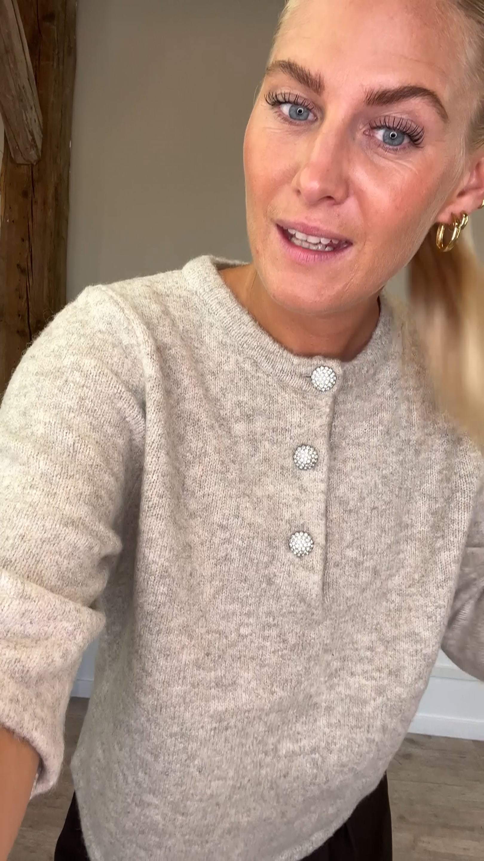Lækker strik fra Continue. Strikken er dejlig blød og har et let og perfekt snit. Strikken har korte ærmer oghar de fineste knapper som giver lidt ekstra til trøjen.