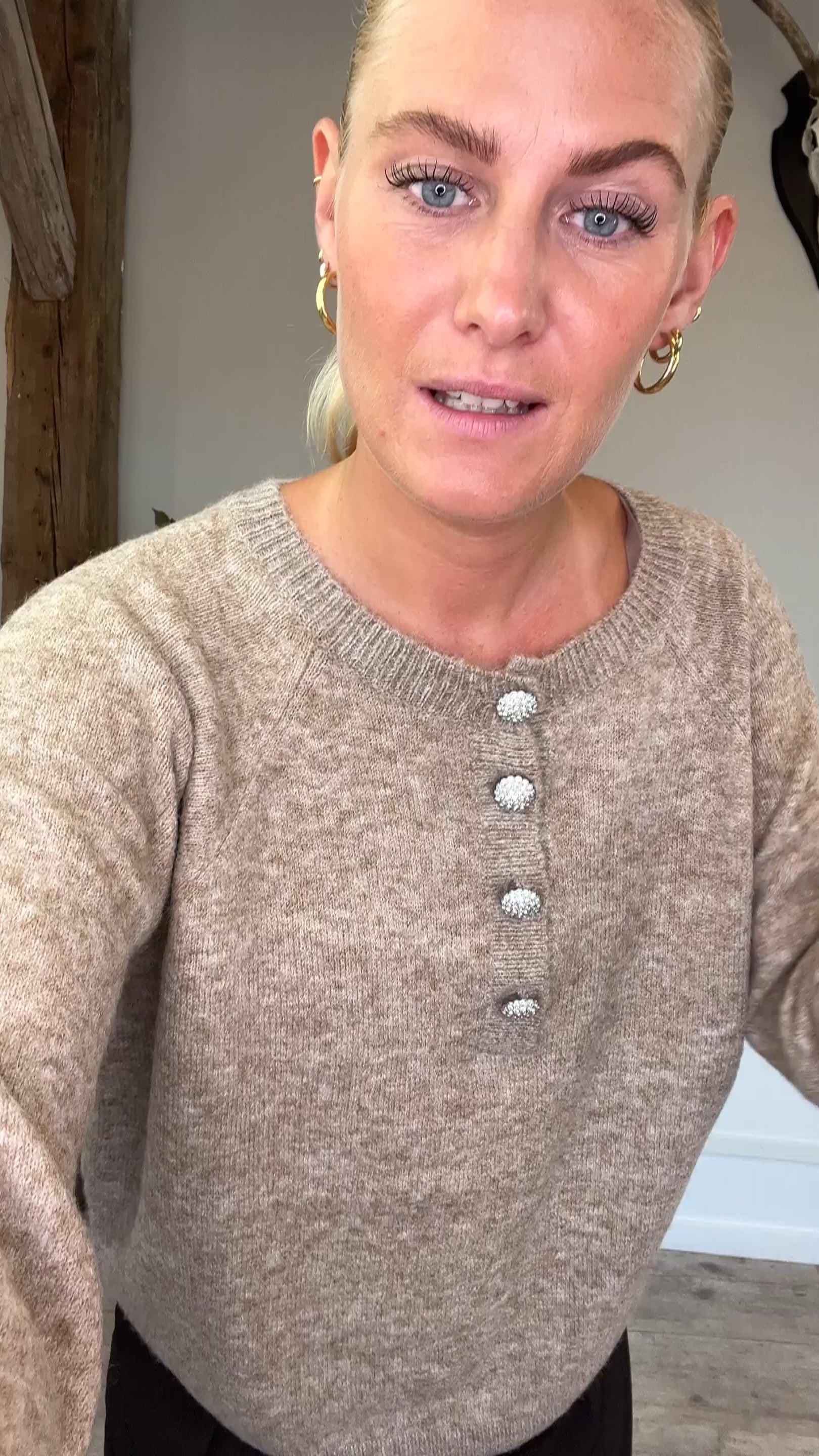Lækker strik fra Continue. Strikken er dejlig blød og har et let og perfekt snit. Derudover har den de fineste knapper som giver lidt ekstra til trøjen.