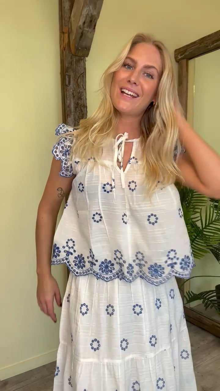 Continue - Top - Lilly emb - Offwhite/Blue Emb