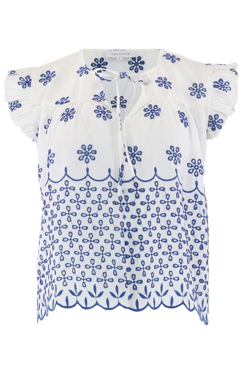 Continue - Top - Lilly Embrodery - Offwhite w Blue Emb