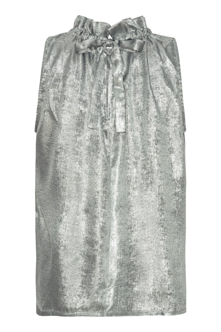 Fin og festlig top fra Continue. Denne top er uden ærmer og bindes i nakken. Toppen har en flot guldfarvet nuance og en løs pasform. En elegant top at bruge til de kommende julefrokoster, nytår eller andre særlige anledninger.