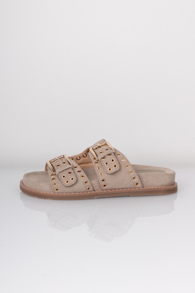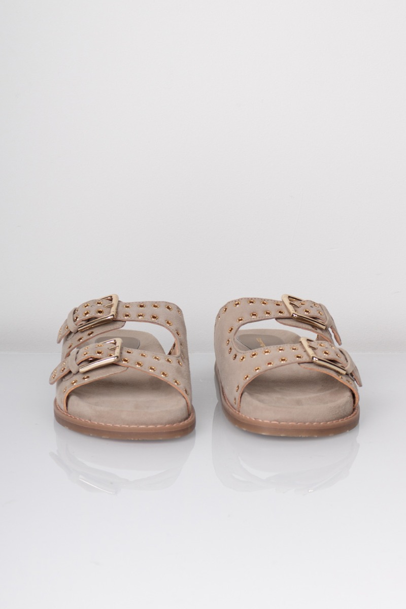 Sandaler fra Copenhagen Shoes med rå nitte dejtaler. Disse sandaler har en lys farve i det lækreste ruskind. De passer til alt og er super behagelige, hele dagen! Sandalerne har letvægtsbund og er super skønne at have på. Vigtigt er at sandalerne er lille i str. Så er du mellem to str så skal du tage den største eller gå en str op.