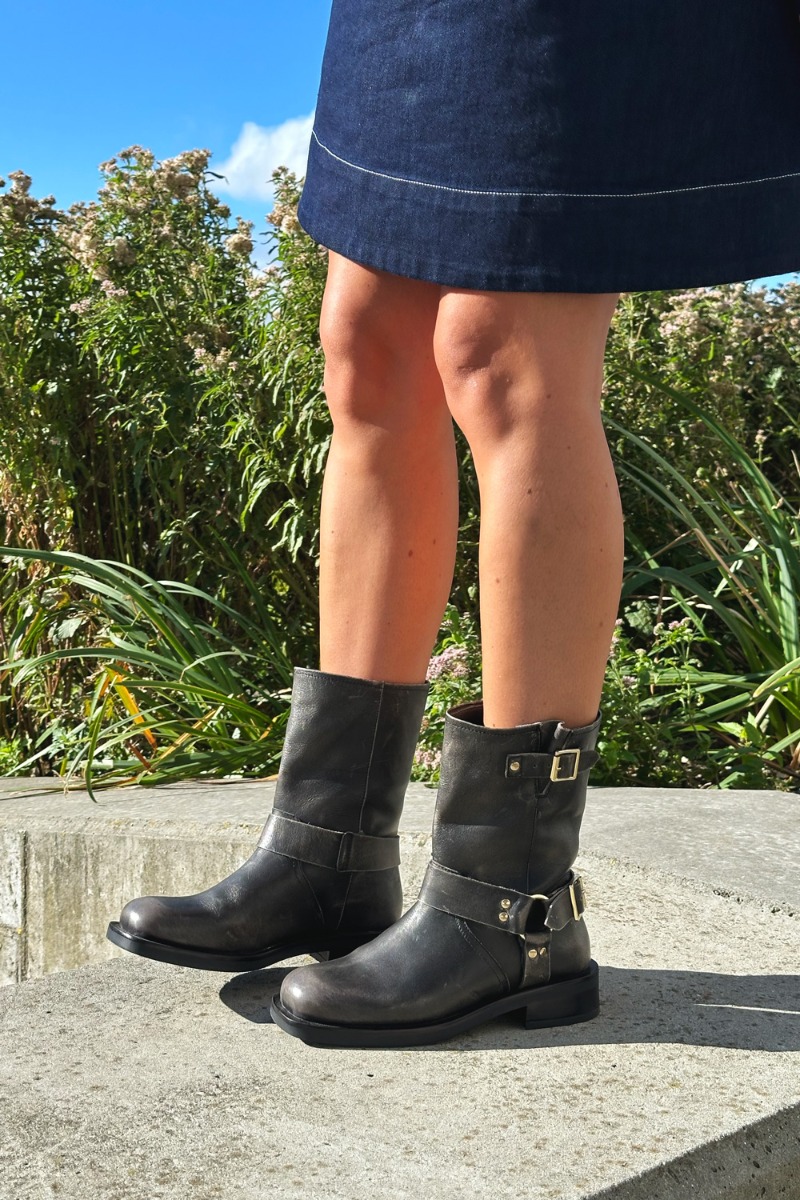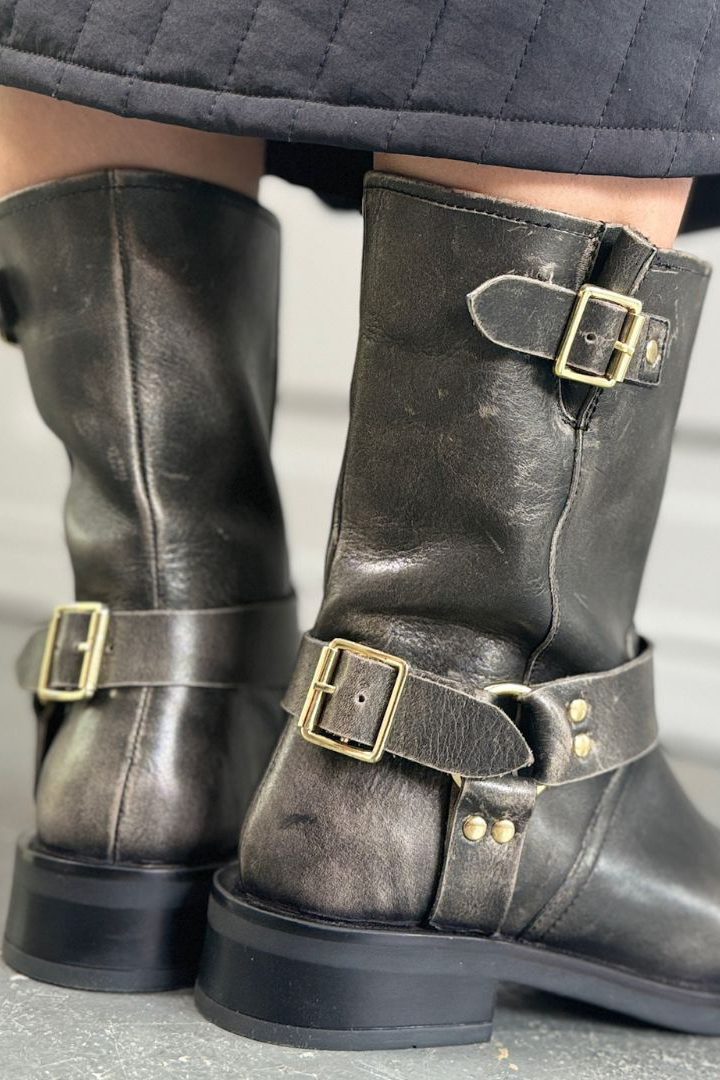 En god bikerstøvle fra Copenhagen Shoes i dette slidte look. Den er med de klassiske rå spænder og har det høje skaft. De er lækre i kvaliteten og mmed til at give dit outfit det ekstra.