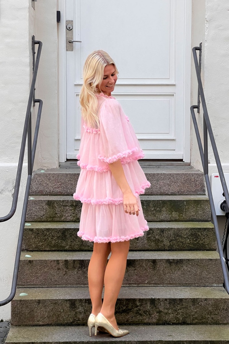 I har allerede taget rigtig godt imod denne smukke kjole i blå, så jeg er ikke tvivl om i også ville elske denne i lyserød. WAUW altså, en rigtig LYKKE kjole. Den er i et løst snit med peplum og de fineste rosedetaljer. Den lukkes foran ved halsen der giver en lille åbning. Style med en stilet eller støvle.