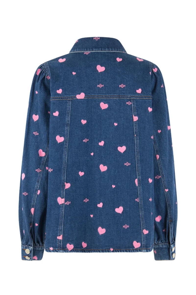 Ej sejeste denimskjorte fra Crás med små broderet lyserøder hjerter. En vaskeægte LYKKE skjorte!