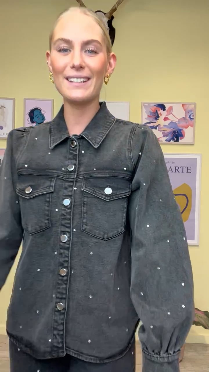En cool denim skjorte fra Crás med små rhinsten i sølv der giver en feminin detalje. Skjorten har brystlommer foran og knapper hele vejen ned med logo. Skjorten har lange ærmer med en lille pufdetalje og kan styles med de matchende denim jeans.