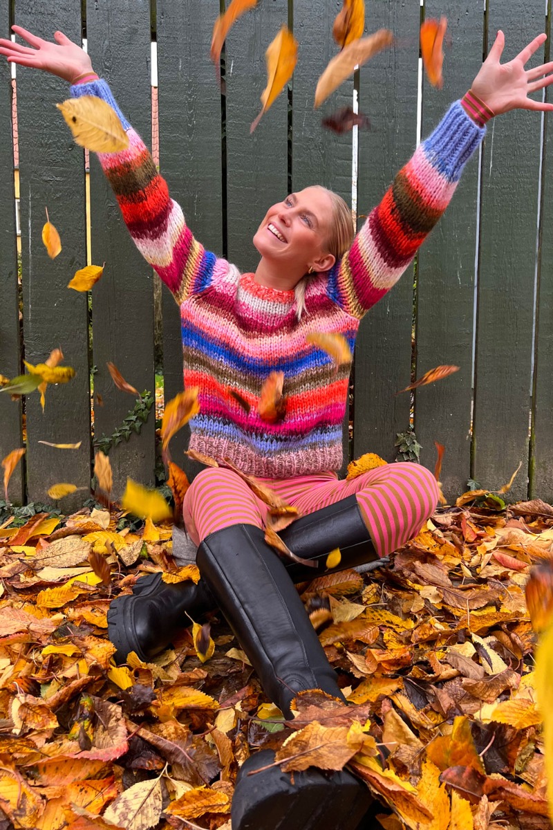 Den skønneste strik fra Dawn x Dare der virkelig får alle de gode minder frem fra mormors hjemmestrik. Strikken har en klassisk pasform med o-neck og lange ærmer i det dejligste stribet multifarvet mønster. Den er lavet i den lækreste kvalitet med kid mohair der gør den utrolig blød.