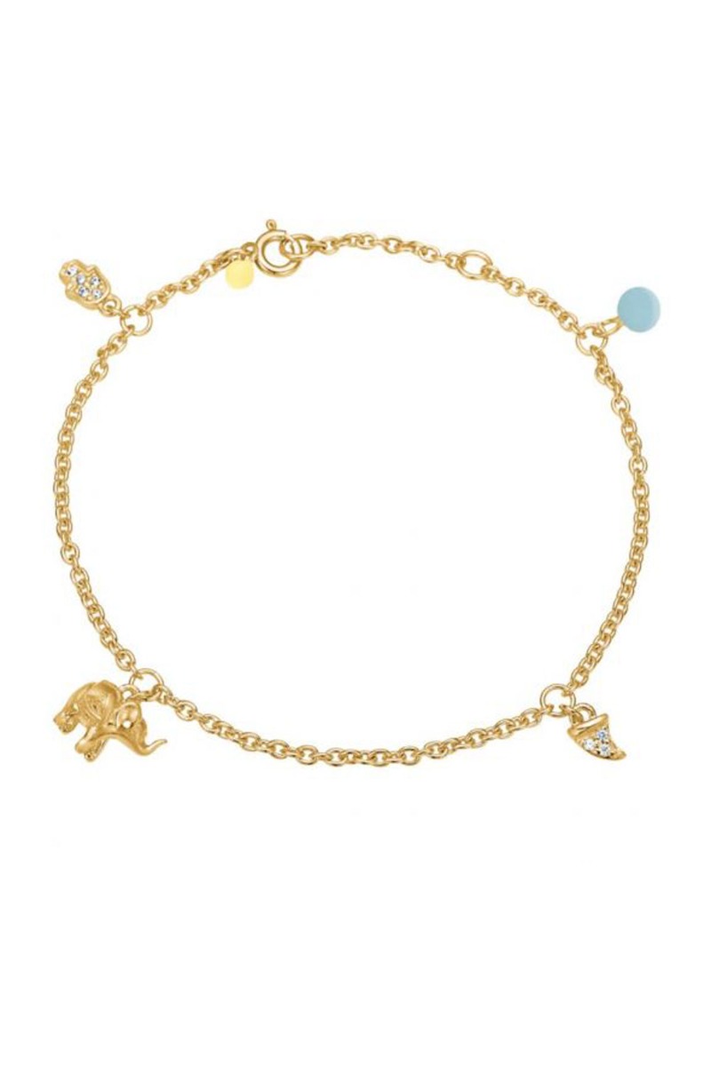 Det fineste armbånd med små vedhæng! Armbåndet er i forgyldt sterling sølv og kan matches med mange andre smykker.