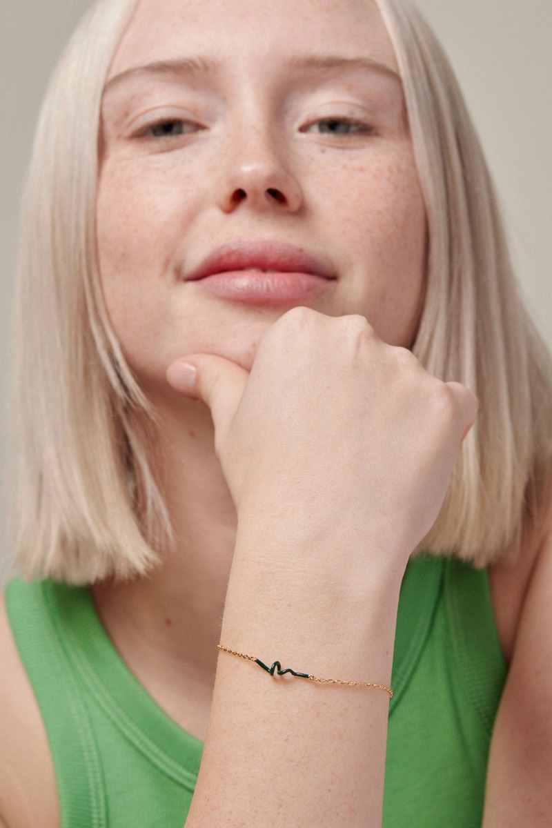 Vi ELSKER virkelig de nye armbånd fra Enamel med en lille snoning i midten der skaber et twist udtryk. Armbåndet er helt fint enkelt med en mørkegrøn detalje og findes med flere farver. Brug det alene eller style med flere forskellige armbånd for at skabe dit helt eget udtryk.