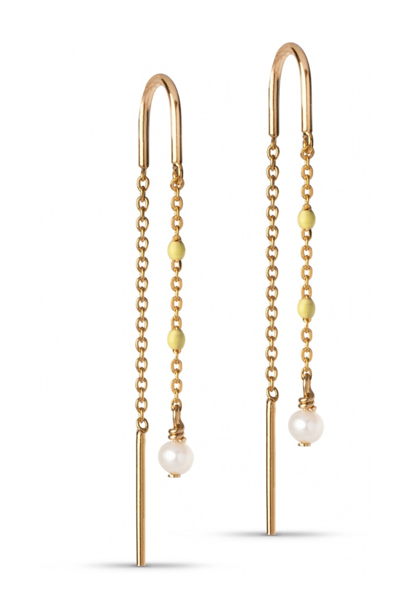 Smukke feminine øreringe fra Enamel med små gule perler. De er super smukke med en feminin kjole og kan samtidig sagtens kombineres med andre. De passer perfekt til foråret og sommeren.