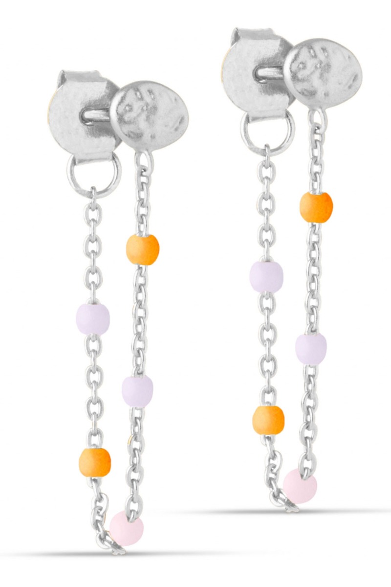 Fin Ørering fra Enamel med små farvede emaljer i lavendel, orange og rosa. Øreringen giver en enkel, smuk og feminin detalje til sommerlooket og kan kombineres med andre for et unikt look. De har matchende halskæde og armbånd for at fuldende looket.