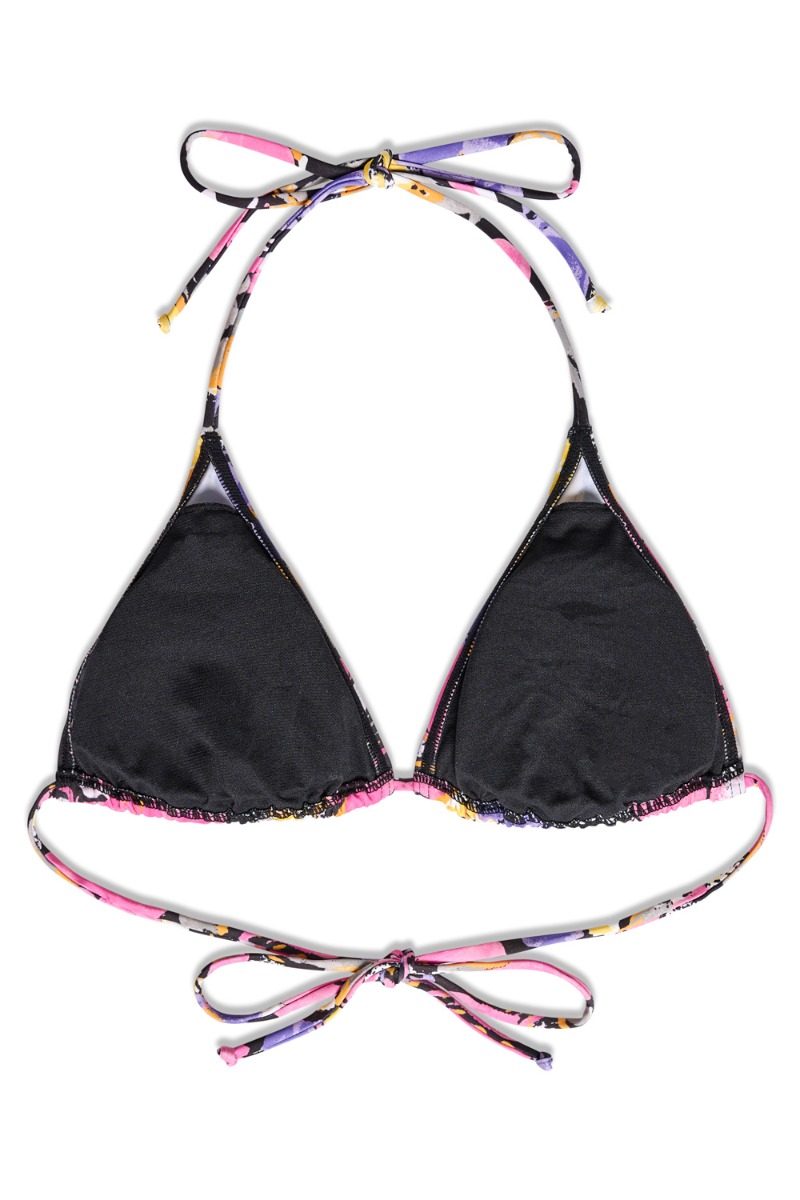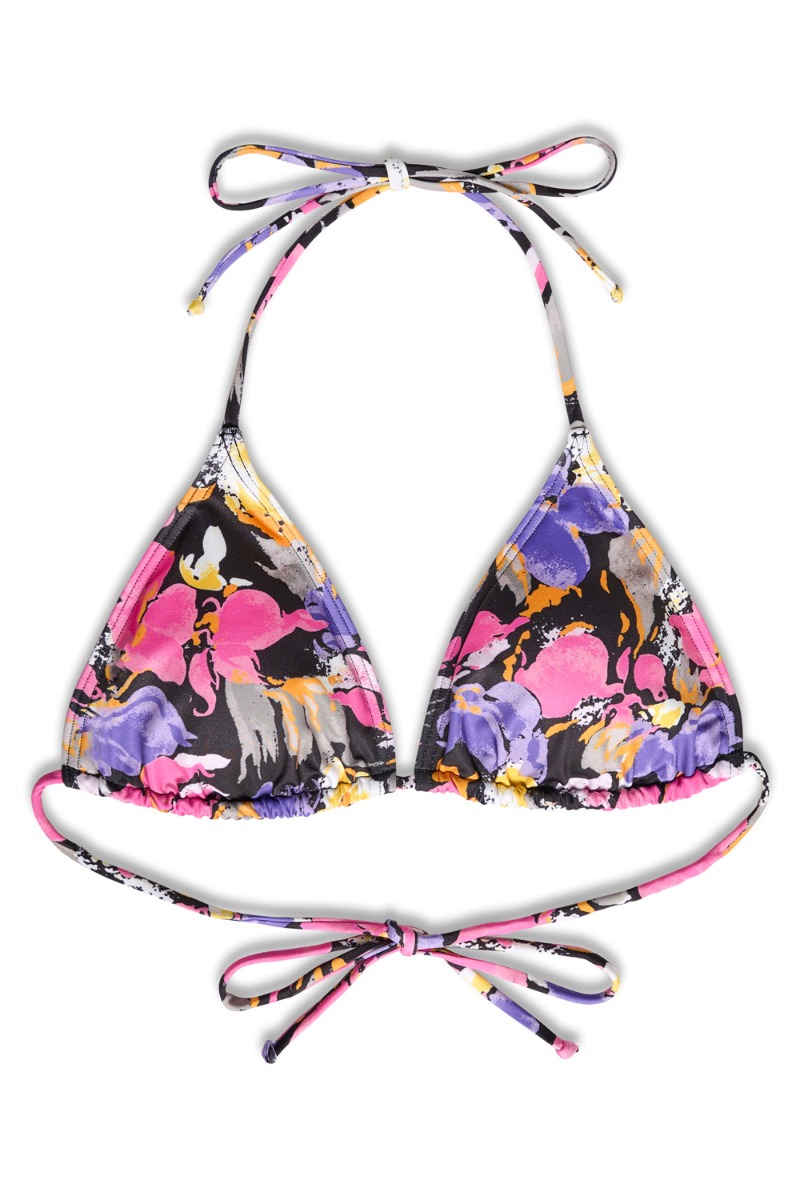 Vi er faldet helt bladask for denne smukke bikini top fra Gestuz med matchende underdel. Bundfarven er sort med det skønneste blomsterprint i pink, lilla og orange nuancer. Bikini toppen er trekantet med snøre i nakken og på ryggen der gør det nemt selv at justere den. Den har aftagelig indlæg og er så smuk på til de solrige sommerdage!